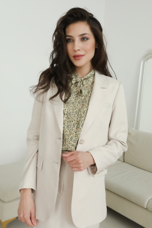 Пиджаки могут быть не только темных оттенков, но и светлых, особенно для теплого времени года. Пастельные оттенки отлично сочетаются с цветными блузами или рубашками.