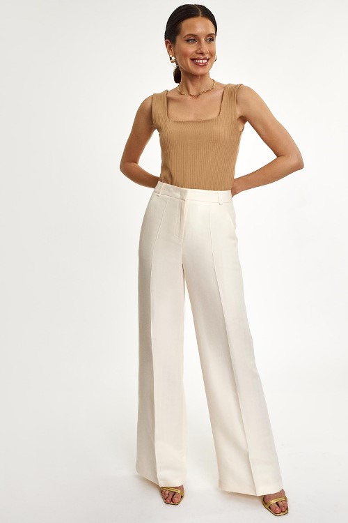 Сегодня особенно востребованы модели по лодыжку зауженной формы, которые имеют подъем до талии и прорезные карманы. Особой изысканности им придают складки у пояса или отвороты по низу изделия. В гардеробе деловой модницы обязательно должны быть такие брюки.