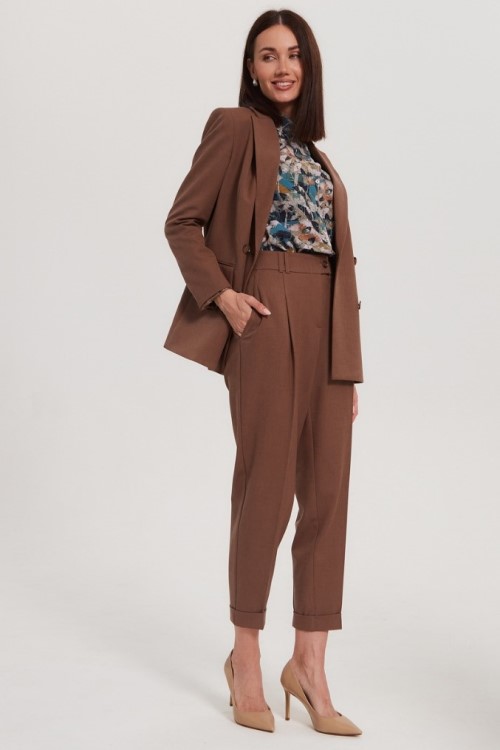 Зауженные к низу брюки подчеркнут фигуру и стройные ноги, отлично сочетаются с топами, могут быть элементом костюма.