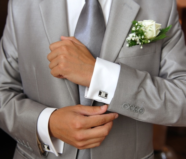 - Запонки и зажим для галстука стоит выбрать из металла одного тона.