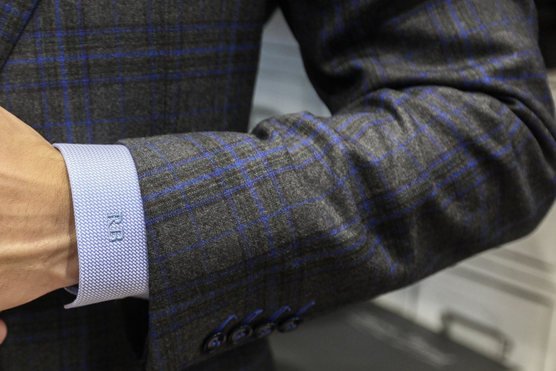 - Сорочка по фасону и цвету подходит к костюму, а ее манжеты выступают из-под рукава на полтора-два сантиметра. При этом рукав пиджака доходит до косточки на запястье, когда руки опущены.