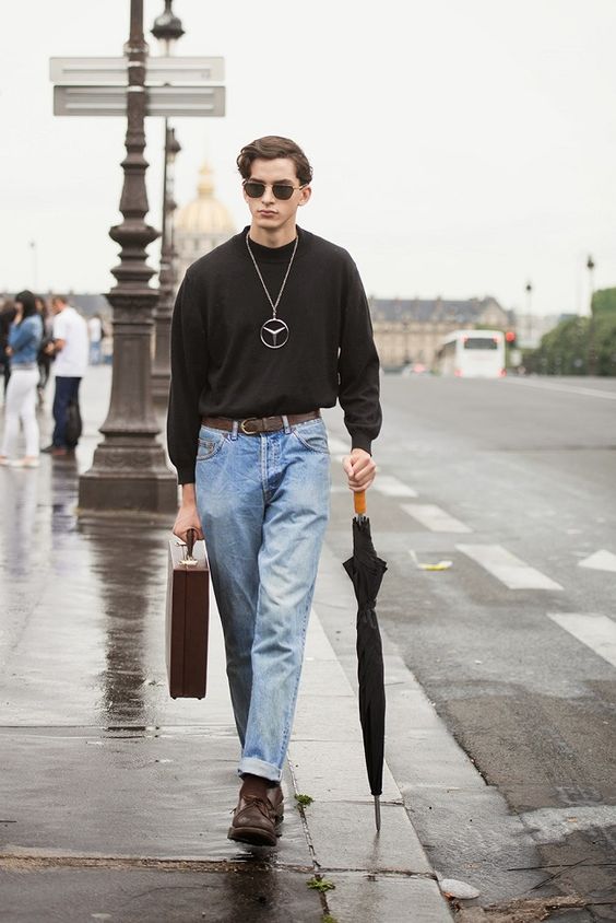 - Джинсы - символ непринужденности и свободы. От традиционного синего до разнообразия расцветок и фасонов. Для стильного и дерзкого образа подберите следующее: кожаный ремень, кеды или ботинки, футболку или неформальную рубашку.