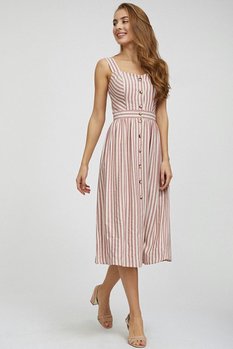 Полоска - самый популярный принт, поэтому мы решили сшили нежное платье-сарафан! Принт не все это достоинства. Например, лён и вискоза делают платье не жарким и игривым.