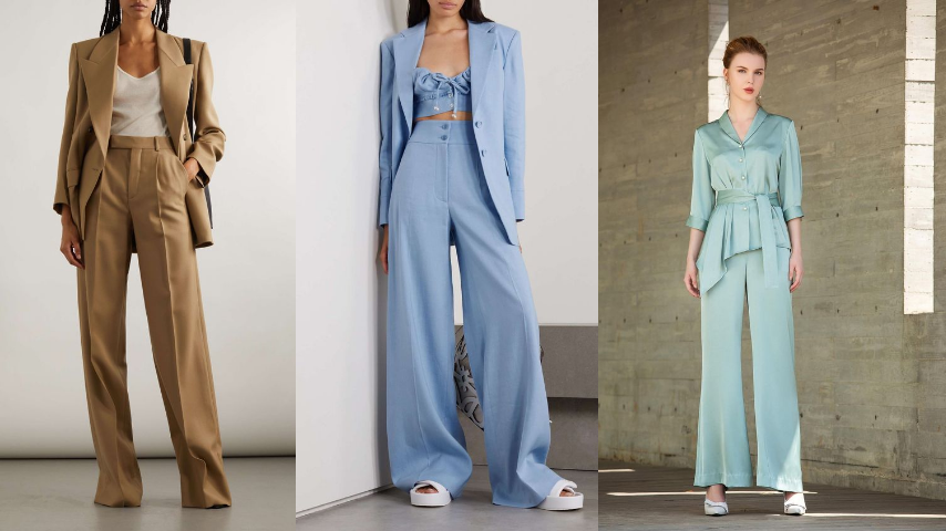 - Кружевной или шелковый топ с широкими брюками-палаццо