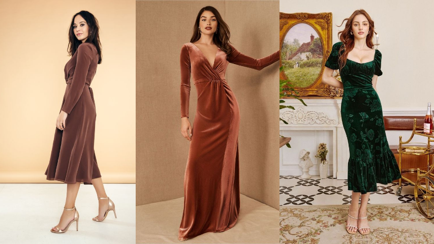 - Длинные платья из плотных тканей: бархат, шерсть, плотный шелк