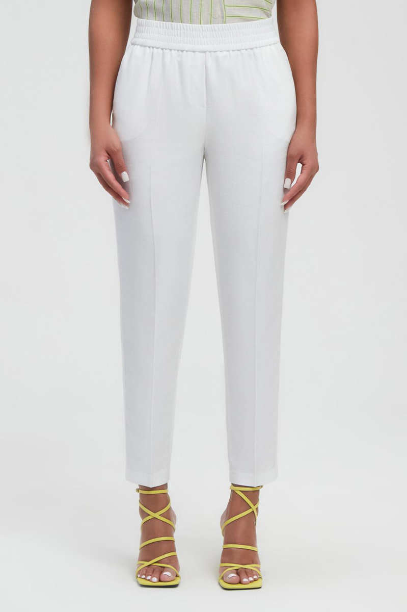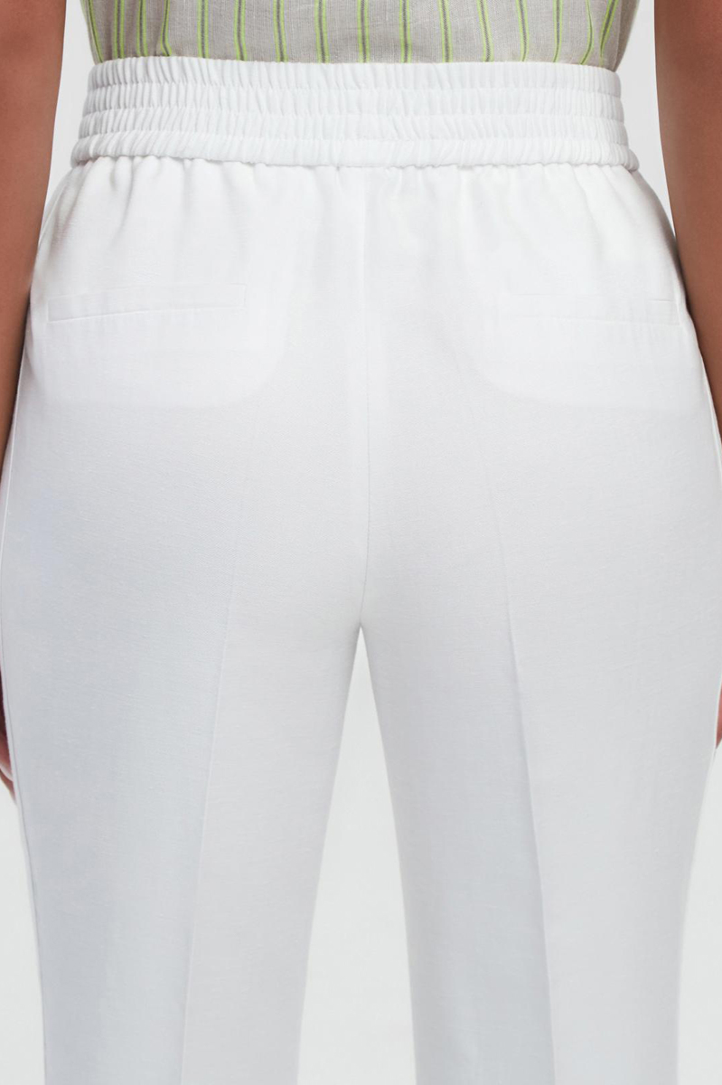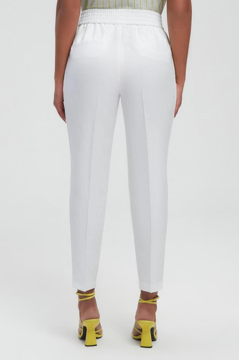 Брюки зауженные к низу со средней посадкой, без застежки, с боковыми карманами спереди и прорезными карманами сзади.