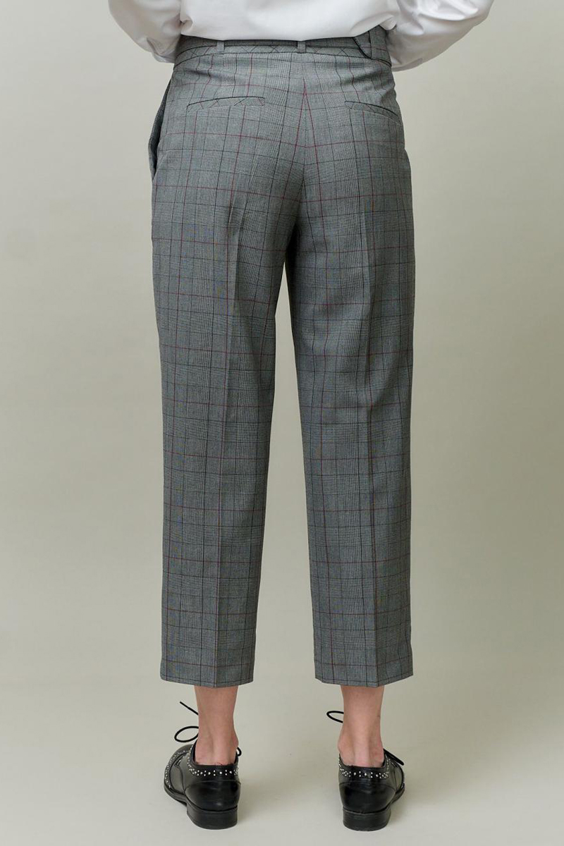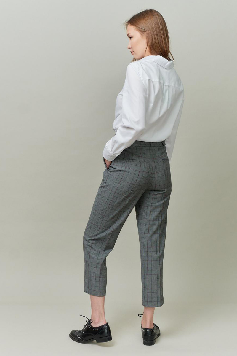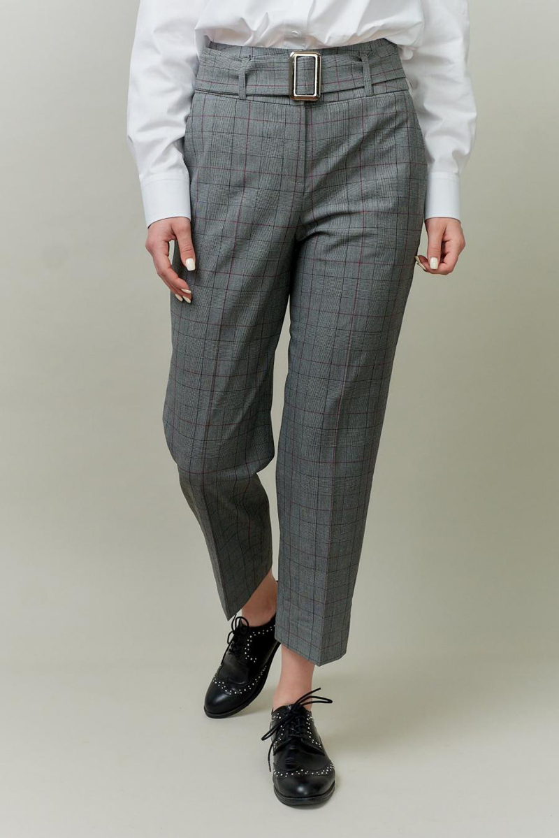 Укороченные брюки с высокой посадкой. На ПП боковые карманы . На ЗП вытачка и листочка Шлевки для ремня.