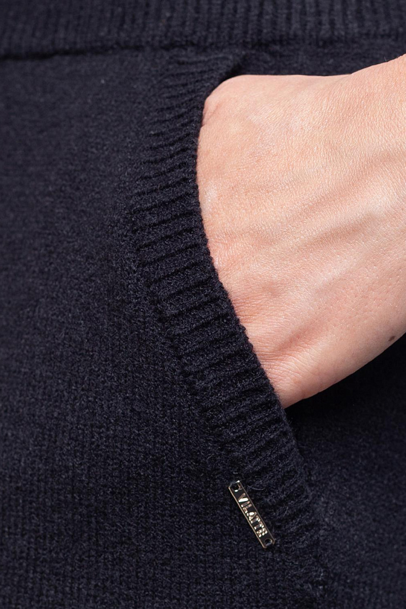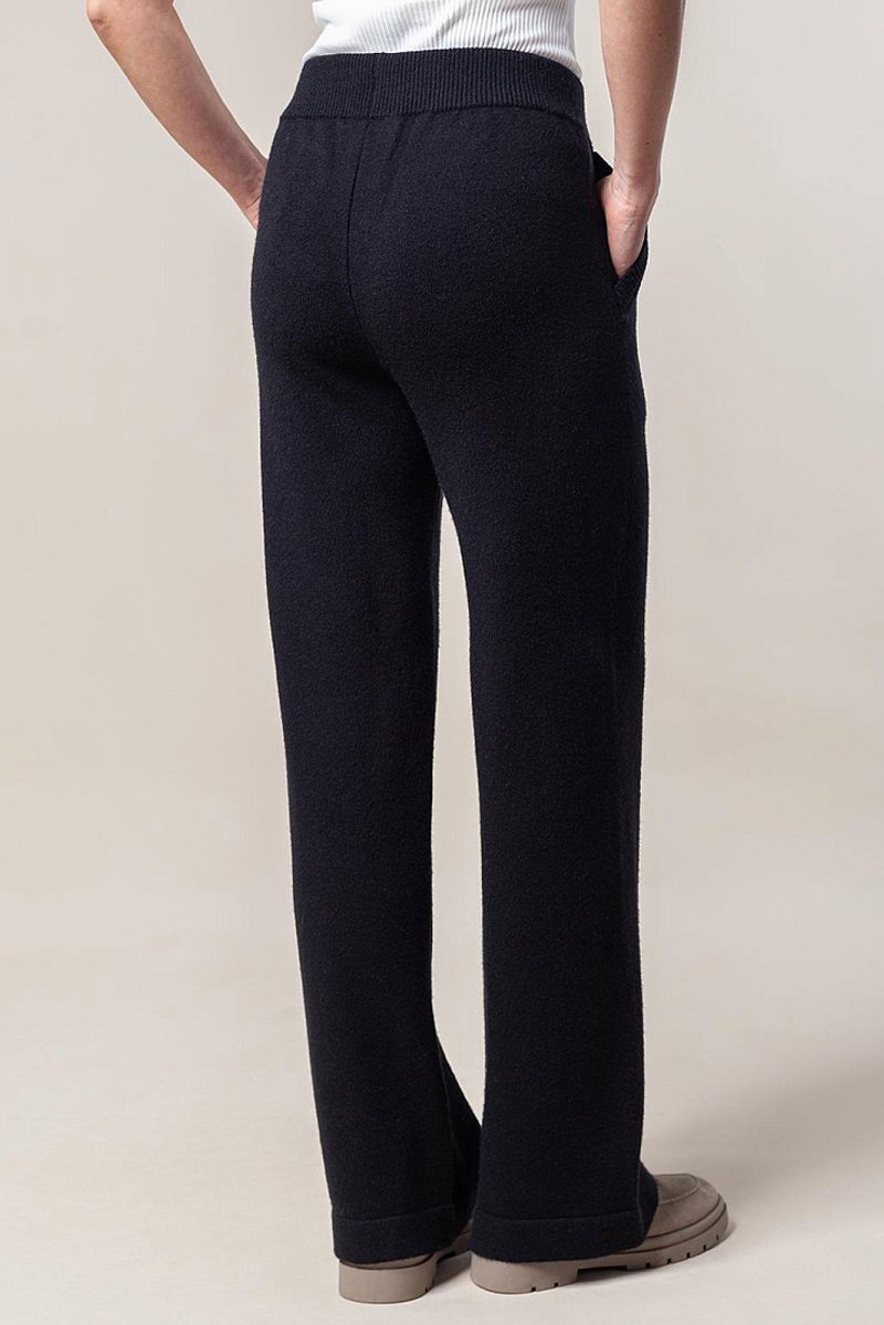 Брюки прямого силуэта выполнены из мягкой пряжи с кашемиром. Нежная пряжа приятно ощущается на теле, сохраняя комфортное тепло. Не колется и не перегревает. Пояс регулируется вязаным шнуром, позволяя носить изделие на талии или чуть ниже. Модель сочетается с любым верхом из коллекции с кашемиром. Отдельным украшением служит металлический логотип бренда.