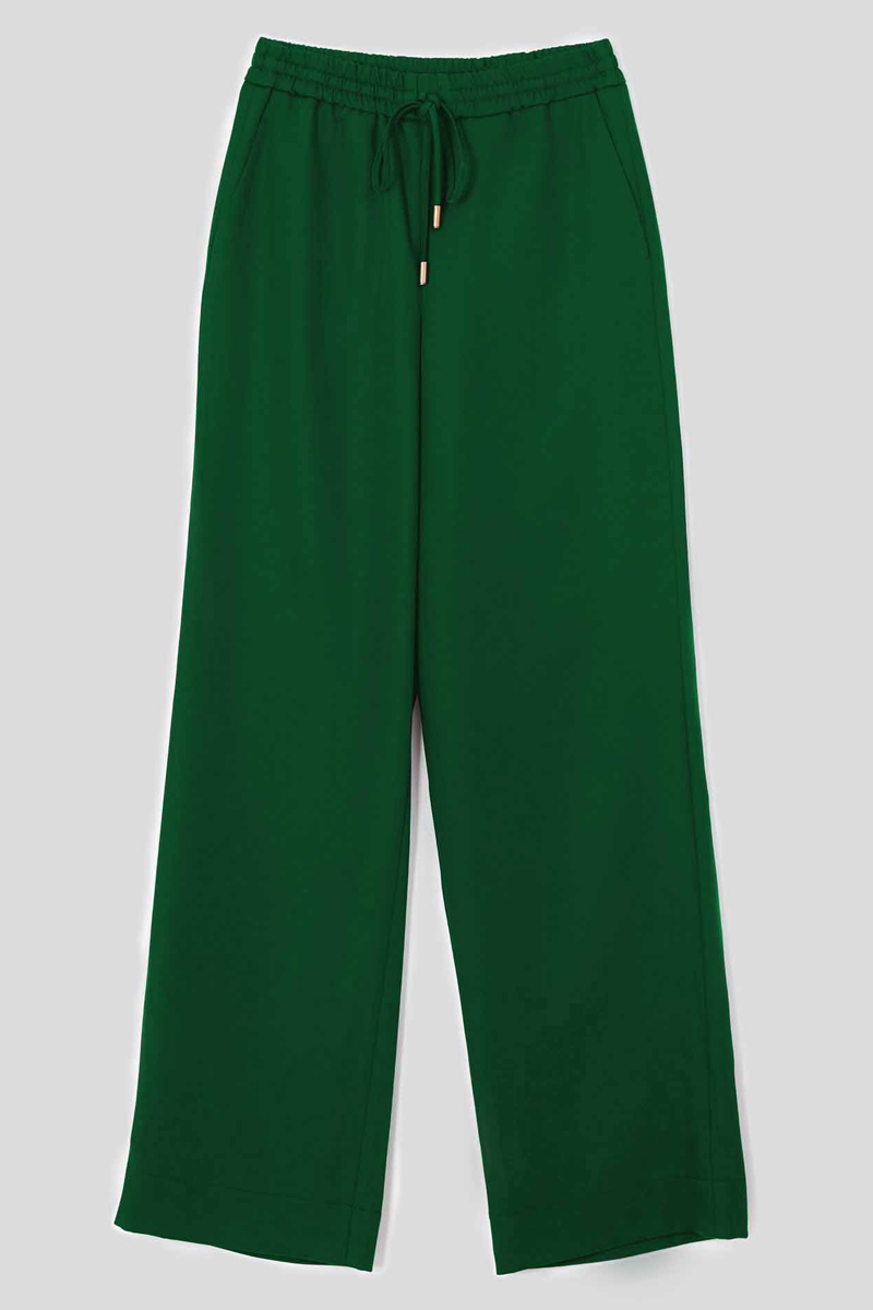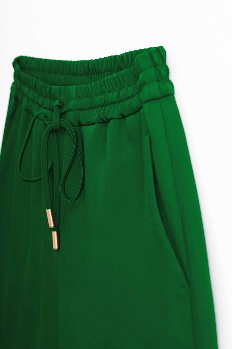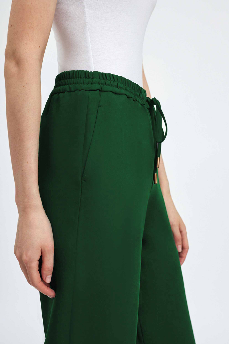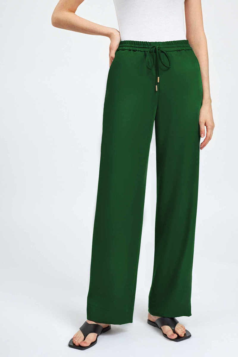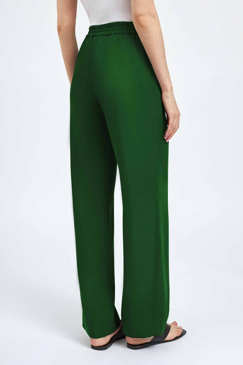 Брюки со средней посадкой; Эластичный пояс на завязках; Рабочие боковые карманы; Декоративный карман сзади; Изделие без подкладки; Рост модели 175 см, размер 42.