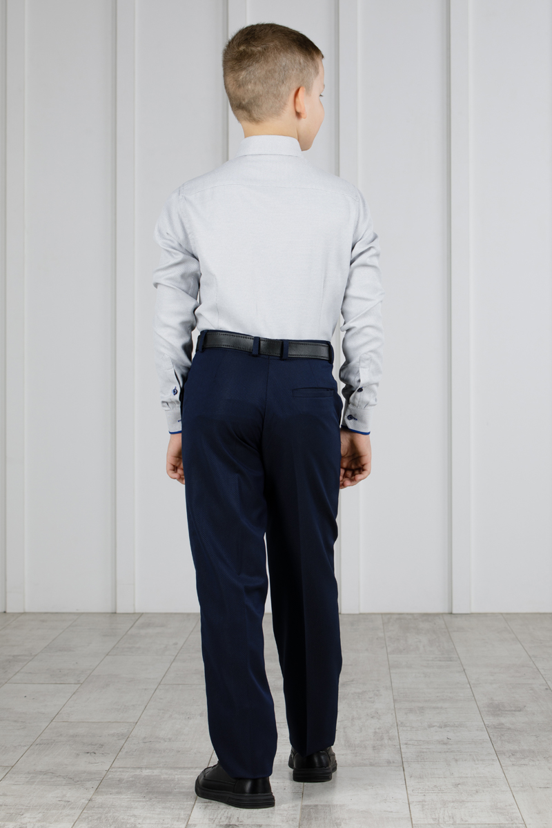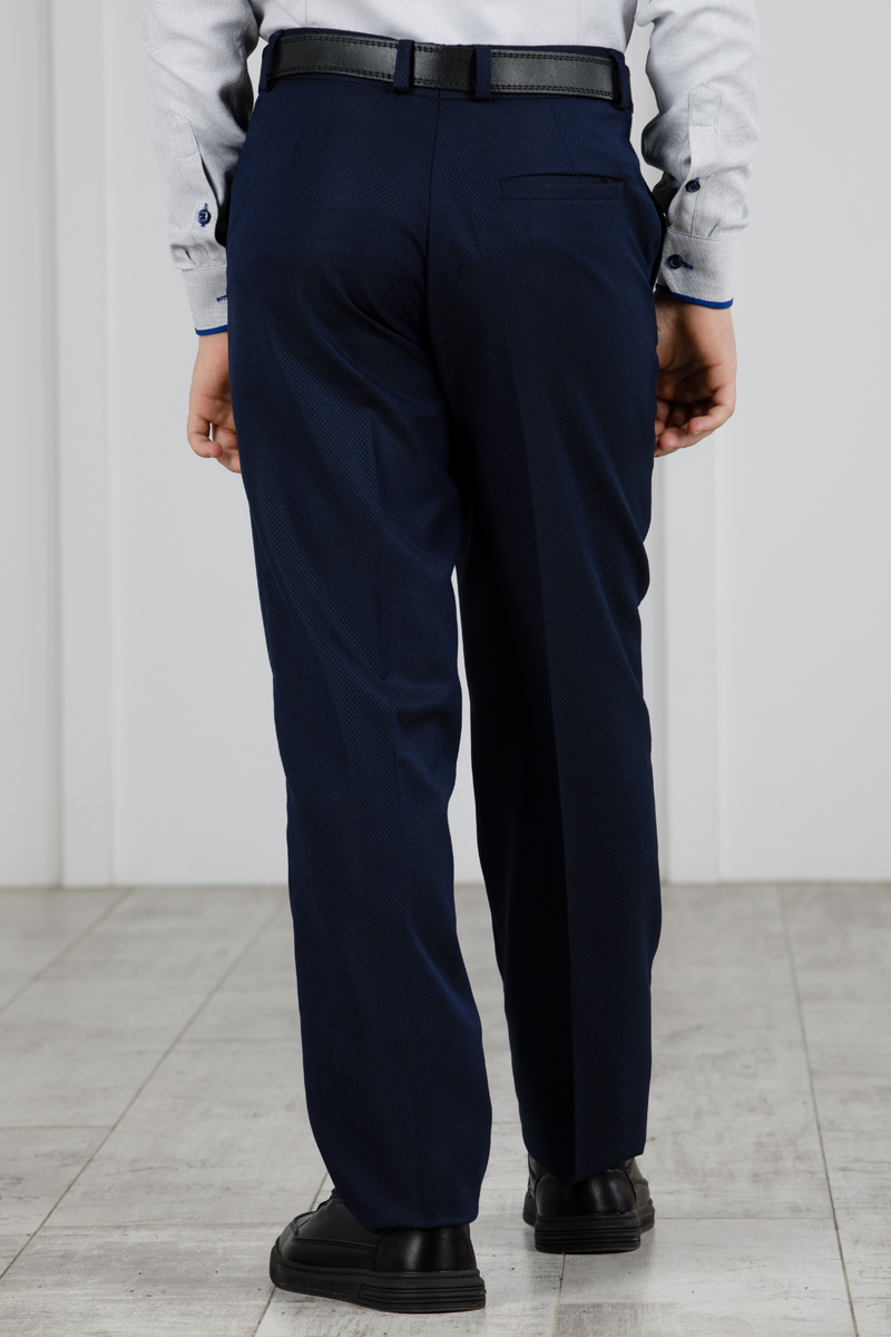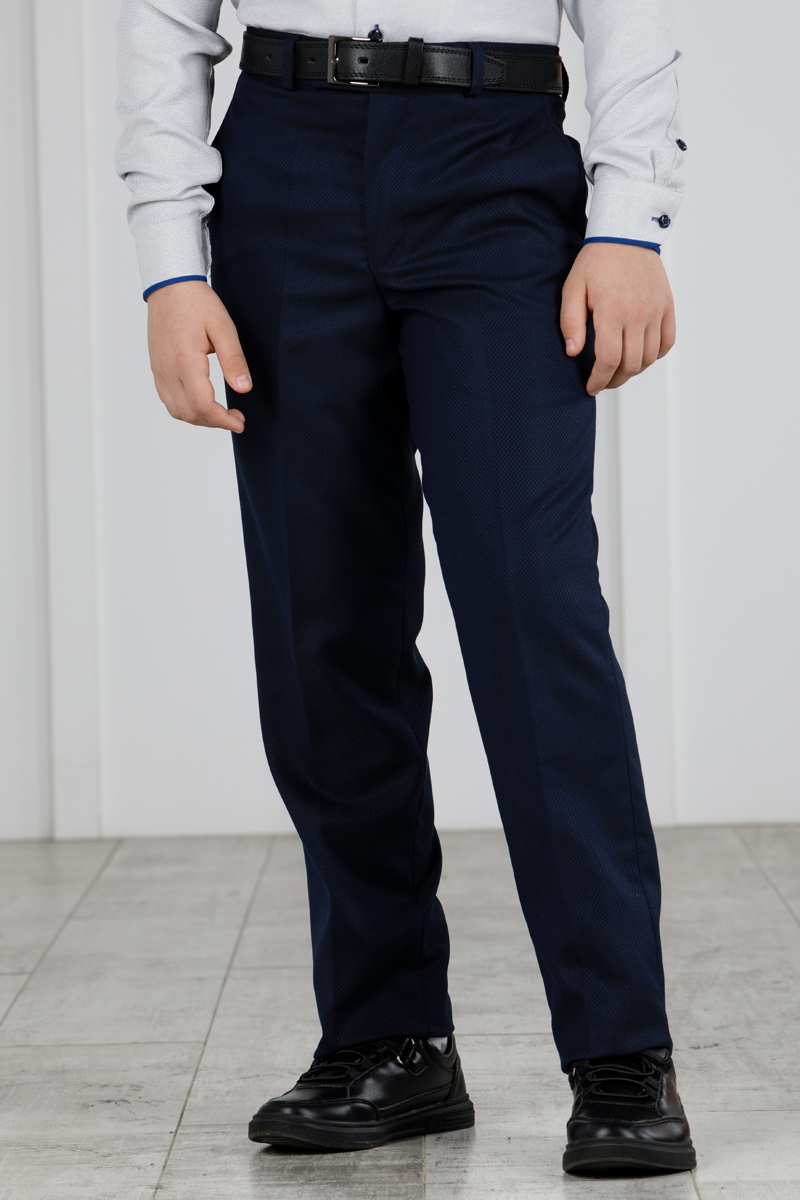 Детские демисезонные классические брюки Svyatnyh синие с узорчатым дизайном — комфорт и стиль для малышейБрюки классического кроя со стрелками от бренда Svyatnyh выполнены в зауженном силуэте без защипов, сочетая традиционный стиль с удобством и элегантностью. Ткань с высоким содержанием шерсти и вискозы, дополненная эластаном, обеспечивает тепло, мягкость и оптимальную эластичность. Регулирующая резинка на талии позволяет адаптировать посадку, что важно для растущих детей в демисезонный период. -