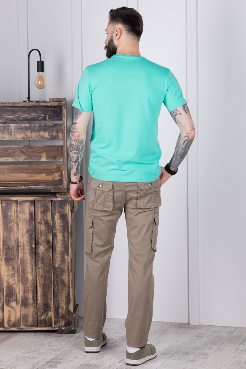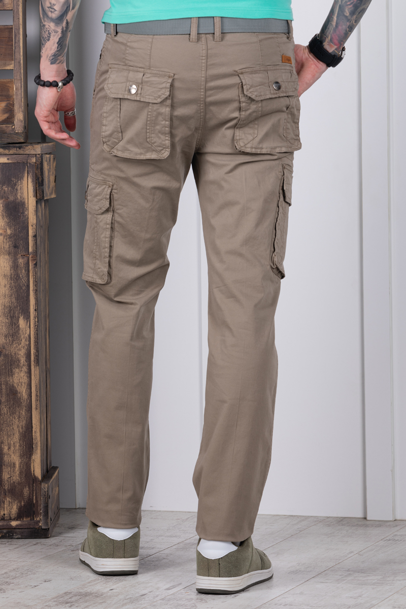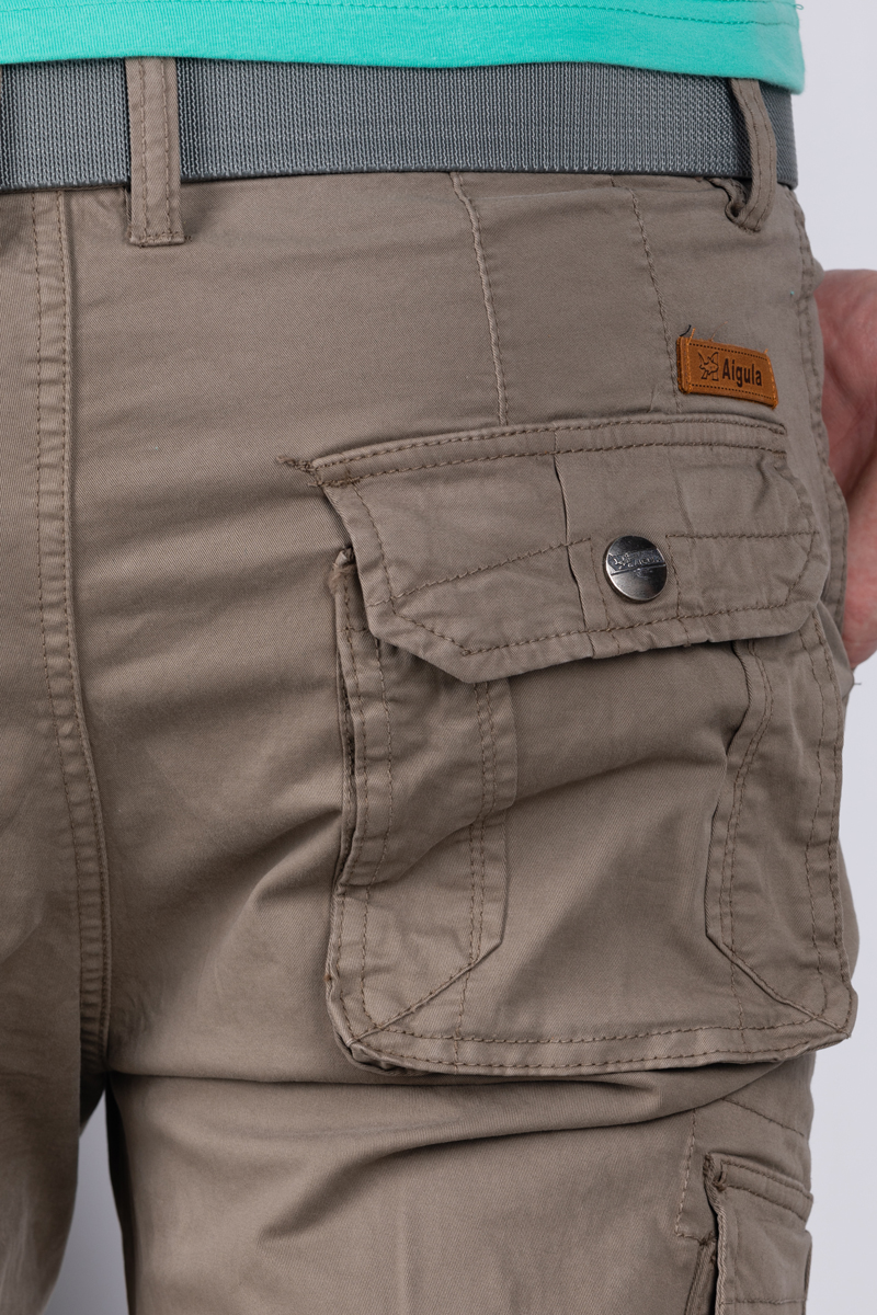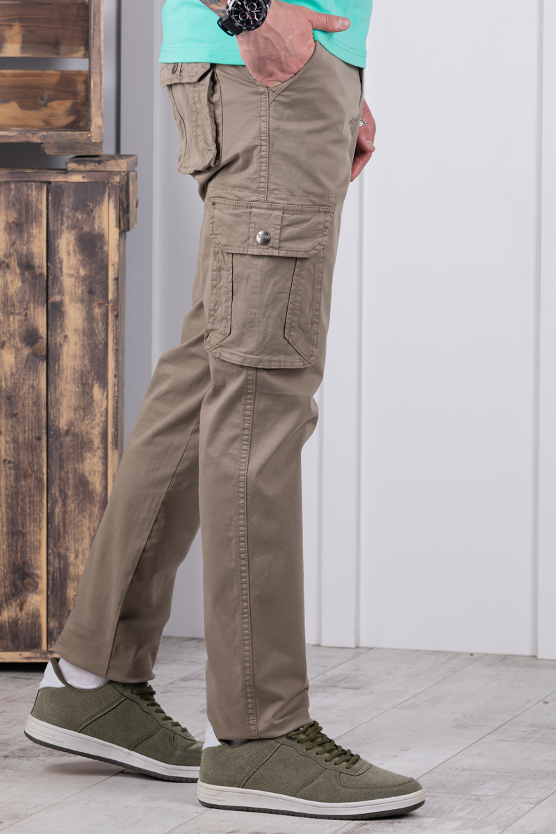 Джоггеры бренда AIGULA выполнены из натуральной хлопковой ткани с добавлением небольшого количества эластана. Силуэт брюк прямой. Джоггеры оснащены множеством карманов: два спереди для рук, два на внешней стороне бедра, два прорезных с клапаном сзади.