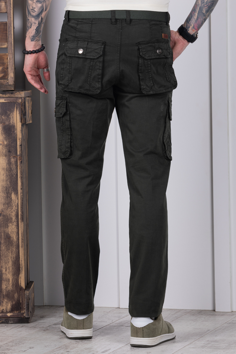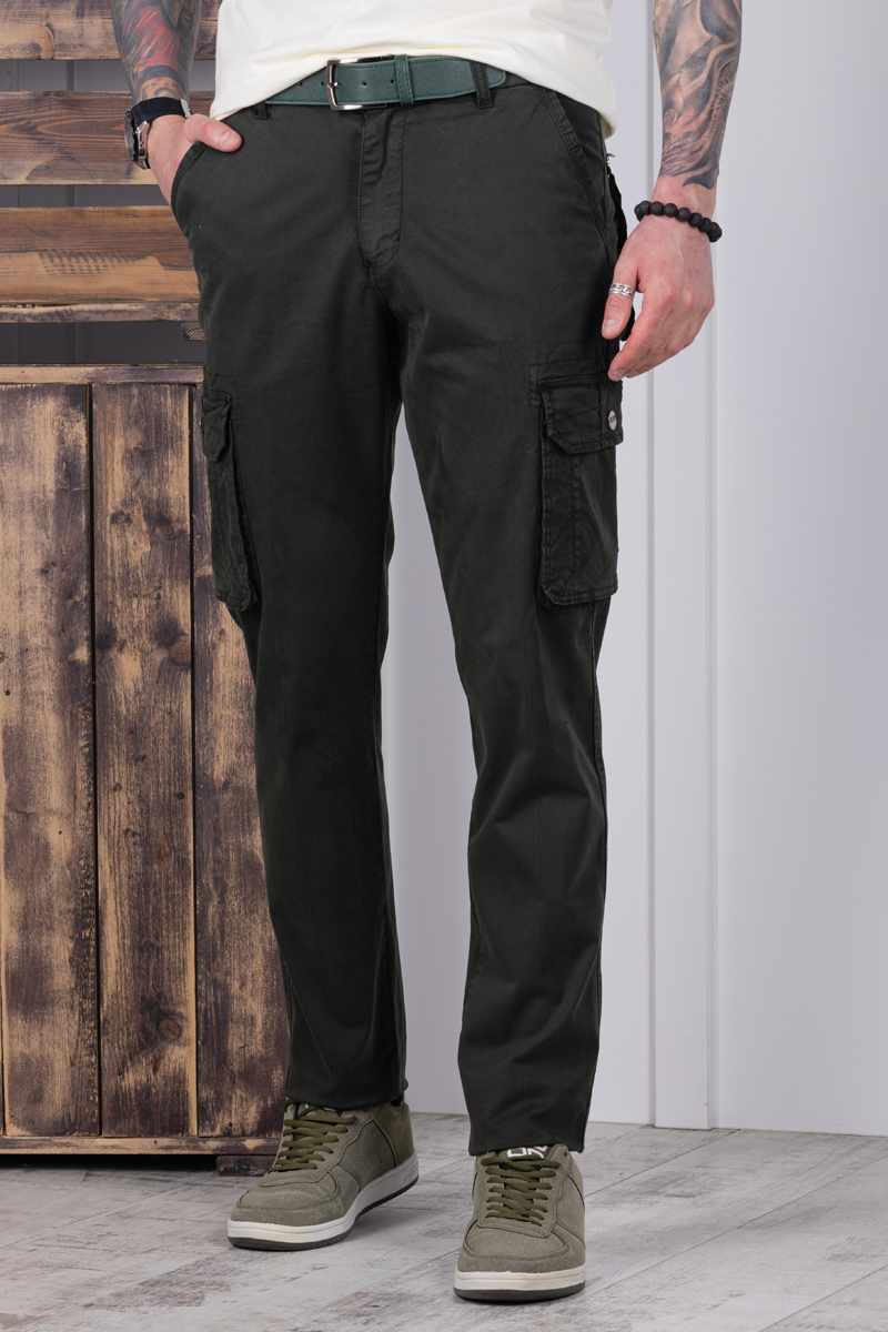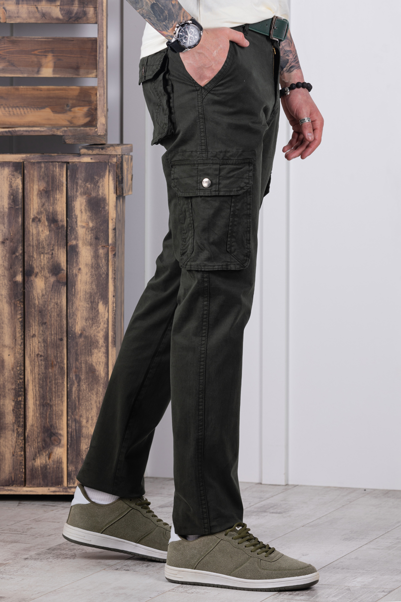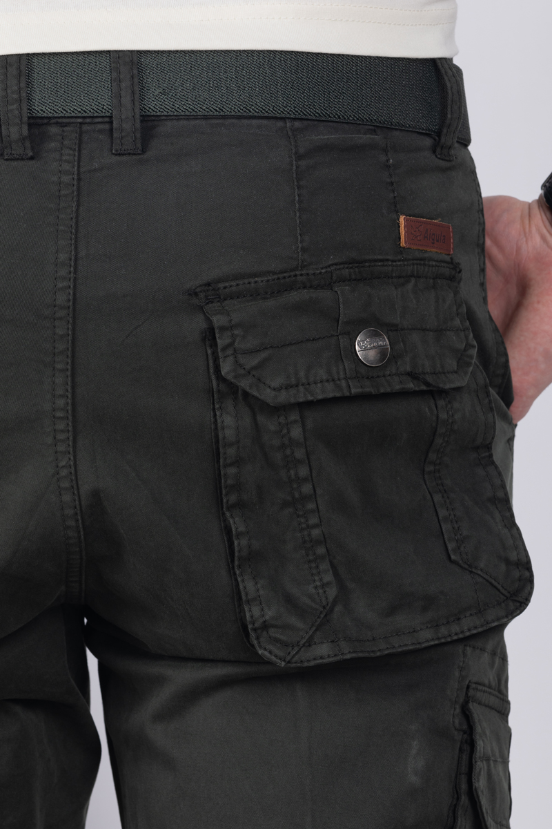 Джоггеры бренда AIGULA выполнены из натуральной хлопковой ткани с добавлением небольшого количества эластана. Силуэт брюк прямой. Джоггеры оснащены множеством карманов: два спереди для рук, два на внешней стороне бедра, два прорезных с клапаном сзади.
