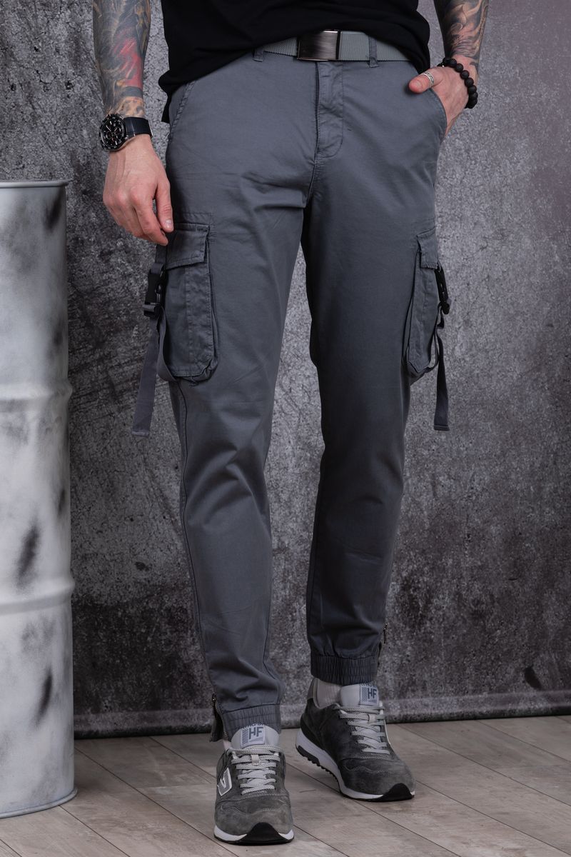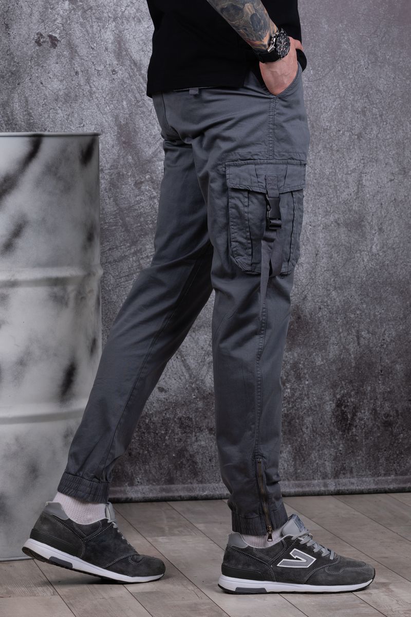 Джоггеры бренда AIGULA с заниженной линией шага из натуральной хлопковой ткани с добавлением небольшого количества эластана. Джоггеры с множеством карманов. Боковые карманы с декоративным замком-пряжкой на ленте. Низ брюк отделан эластичными манжетами.