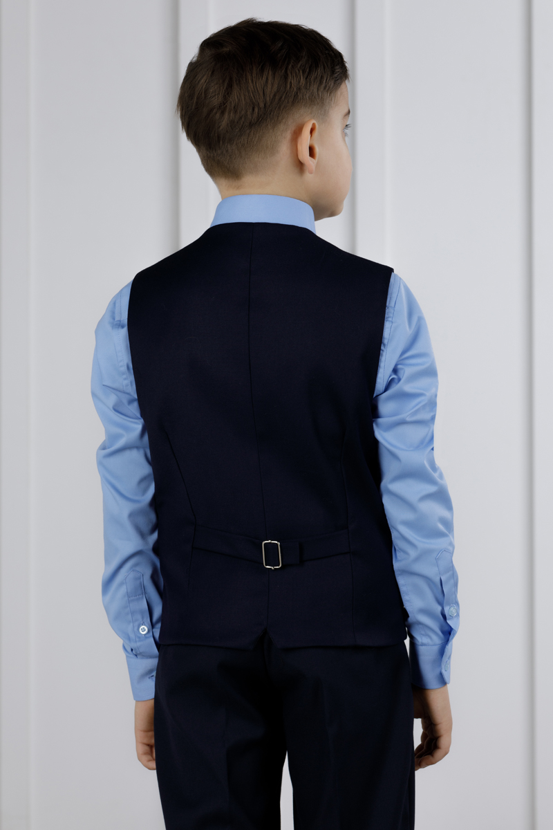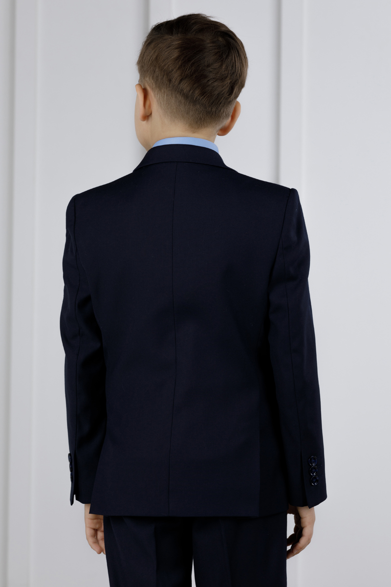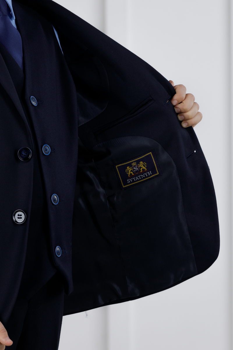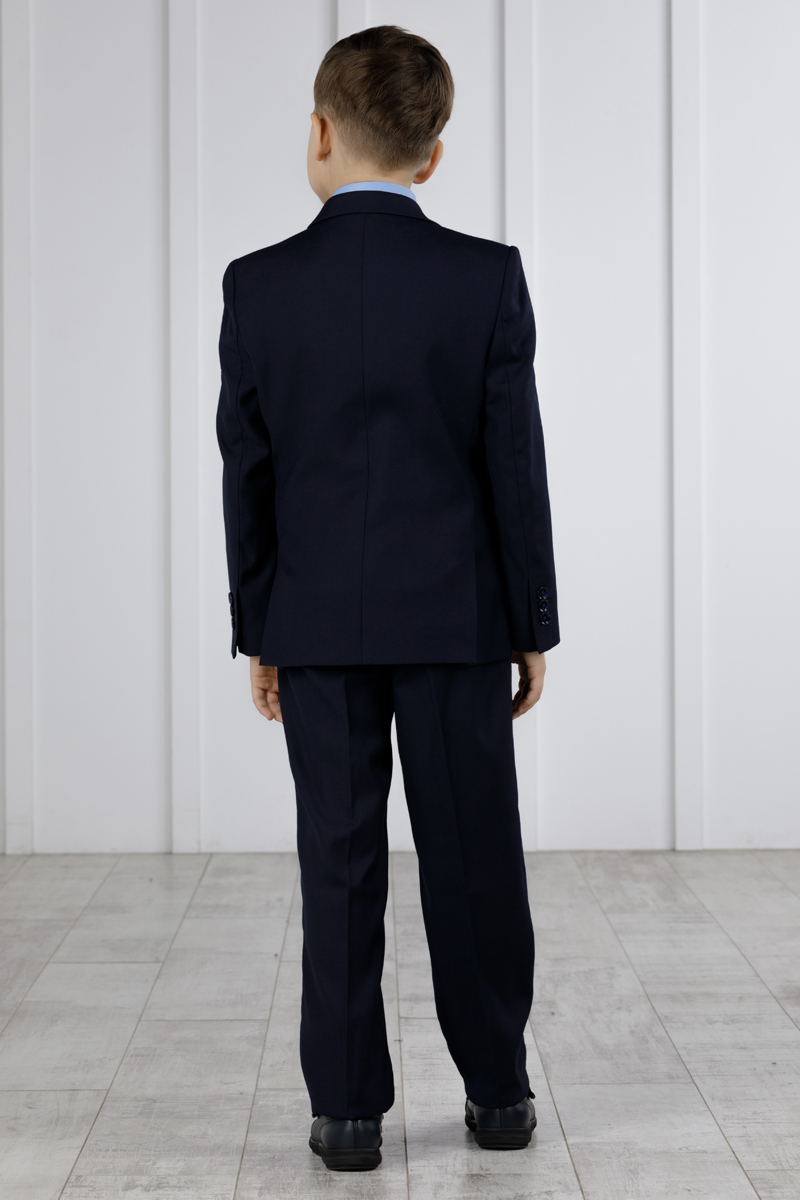 Детский классический демисезонный костюм-двойка от Svyatnyh (Россия) для школы и праздников. Приталенный пиджак с двумя шлицами и прорезными карманами с клапанами, зауженные брюки со стрелками. Качественная ткань сохраняет форму, брюки легко подшить по росту.• Артикул: 5088-Р97.2 костюм детский