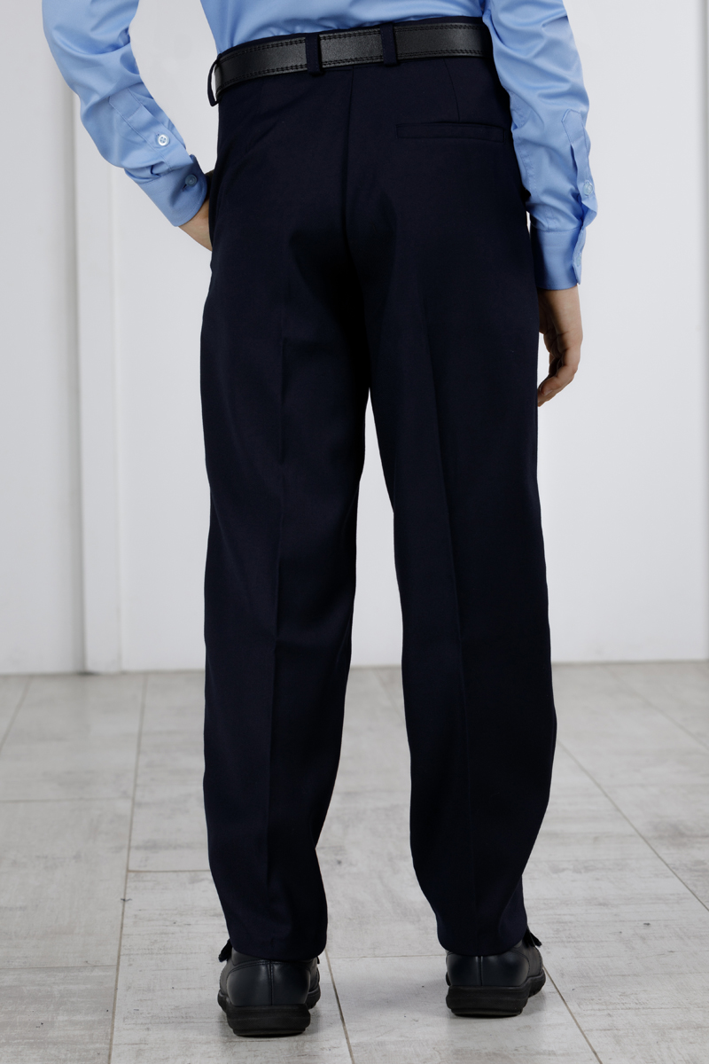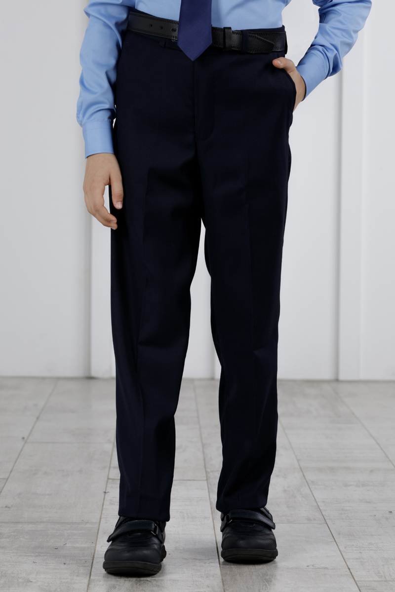 • Обработка низа: брюки оставлены свободной длины — это позволяет легко подшить их точно под рост ребёнка