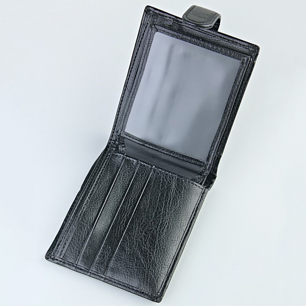Тип застежки: кнопка Портмоне мужское Изделие выполнено из эко-кожи, закрывается на кнопку. Наполнение портмоне: - 2 кармана с "окошком" под пластиковые карточки, - 3 кармана под пластиковые карточки, - 1 карман для мелочи на кнопке, - 2 отдела для купюр любого достоинства и 1 скрытый отдел на молнии, - 2 скрытых кармана для пластиковых карточек, - 2 отсека для сим карты.