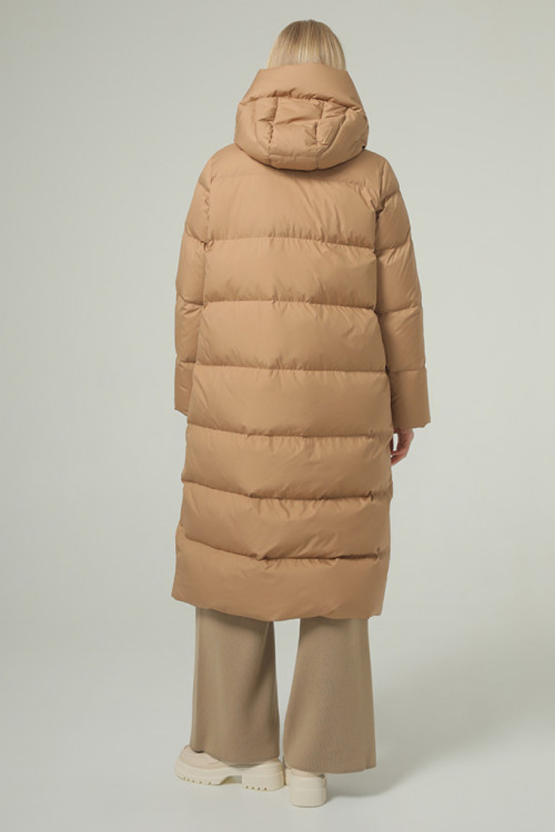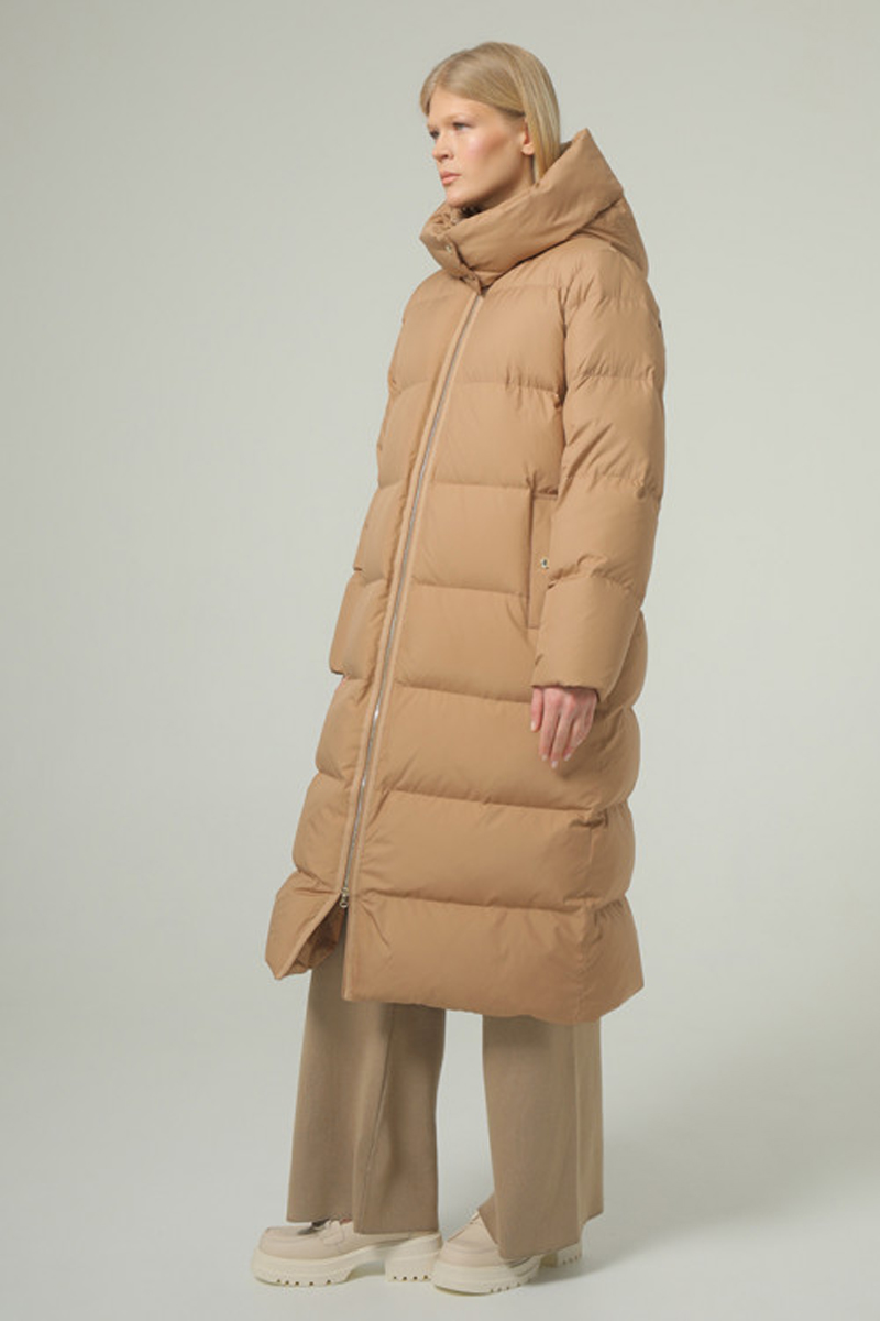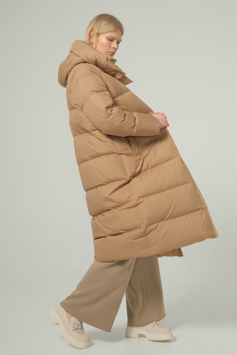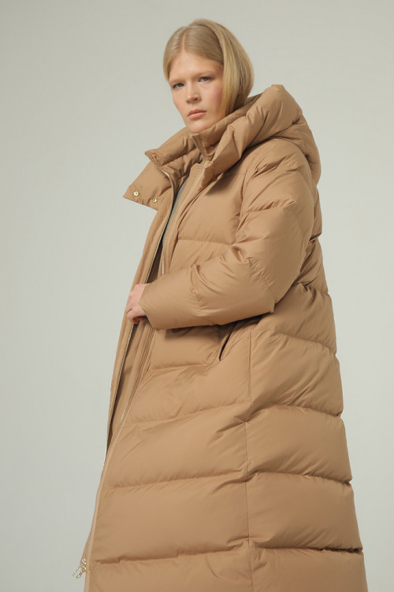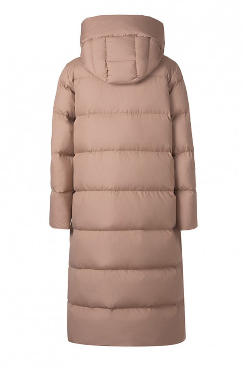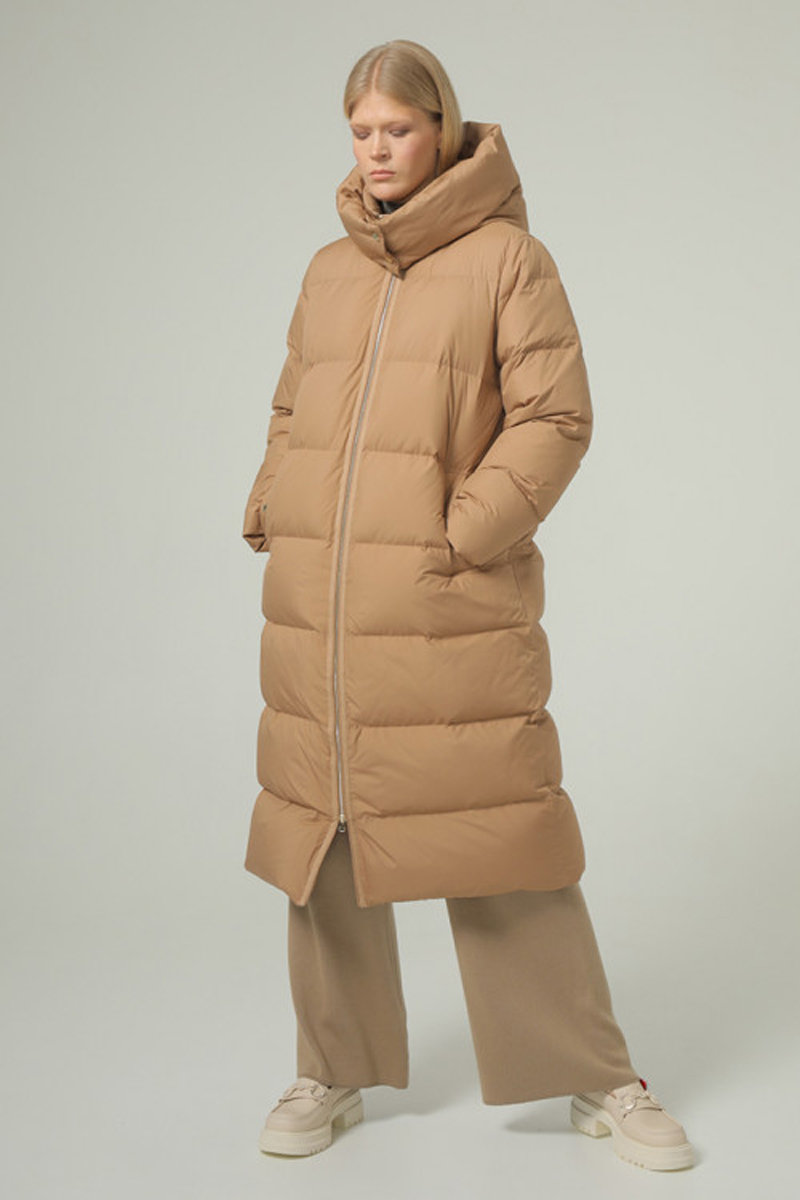 Удобная и плотная удлинённая куртка длиной ниже колена, универсального прямого кроя с капюшоном с 100% натуральным наполнителем из утиного пуха и пера в соотношении 90/10. Длина по спинке в 46 размере 115 см. Это самое длинное изделие нашей коллекции. Прямая стежка с равномерно распределенным пухом, создаст комфортное тепло. Высокая горловина дополнительно защищена застегивающимися на кнопки капюшоном. Застежка на молнии, а карманы и капюшон на кнопки. Комфортное расположение карманов. Удлинённая куртка на ветреную и холодную зиму.