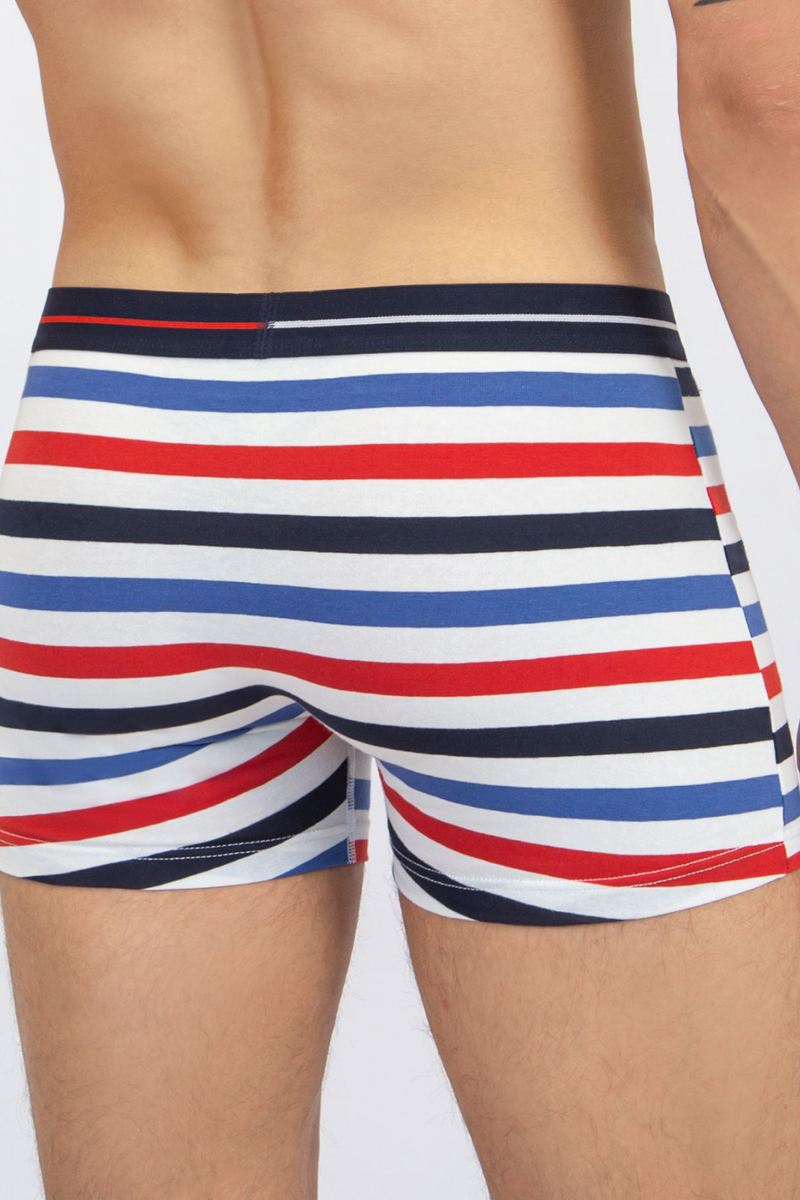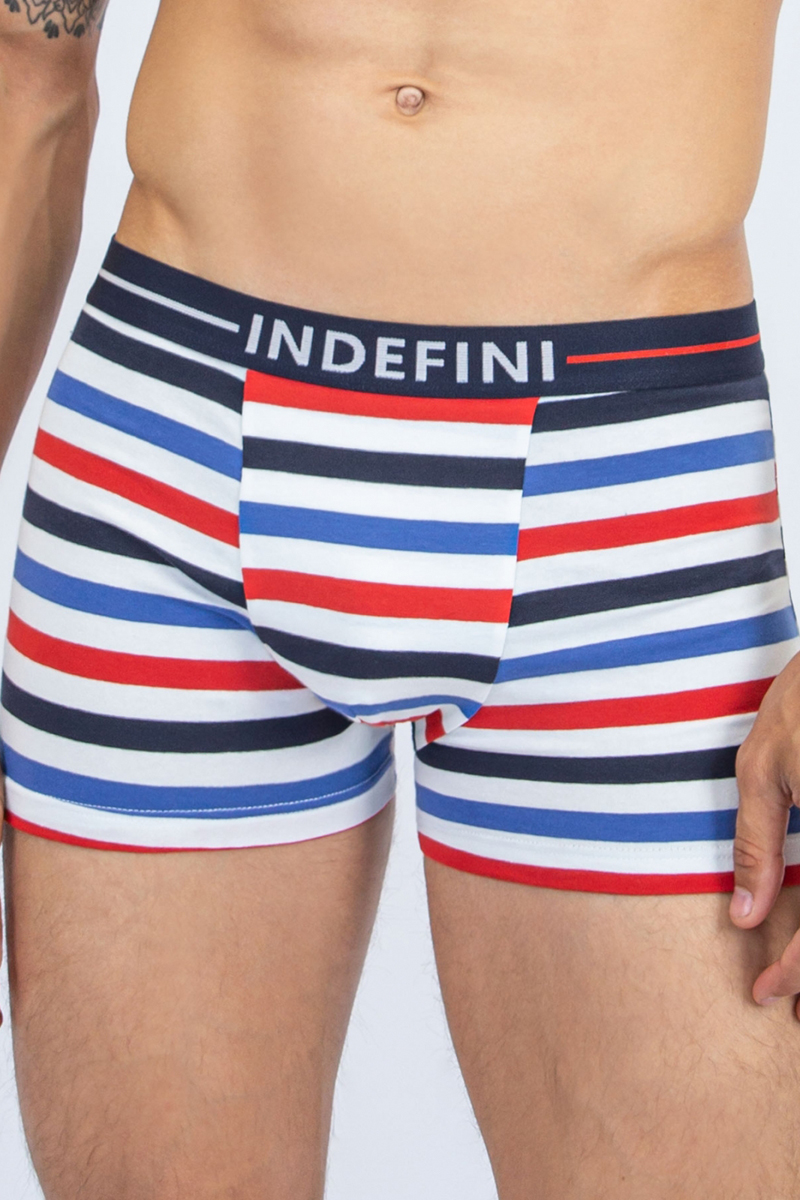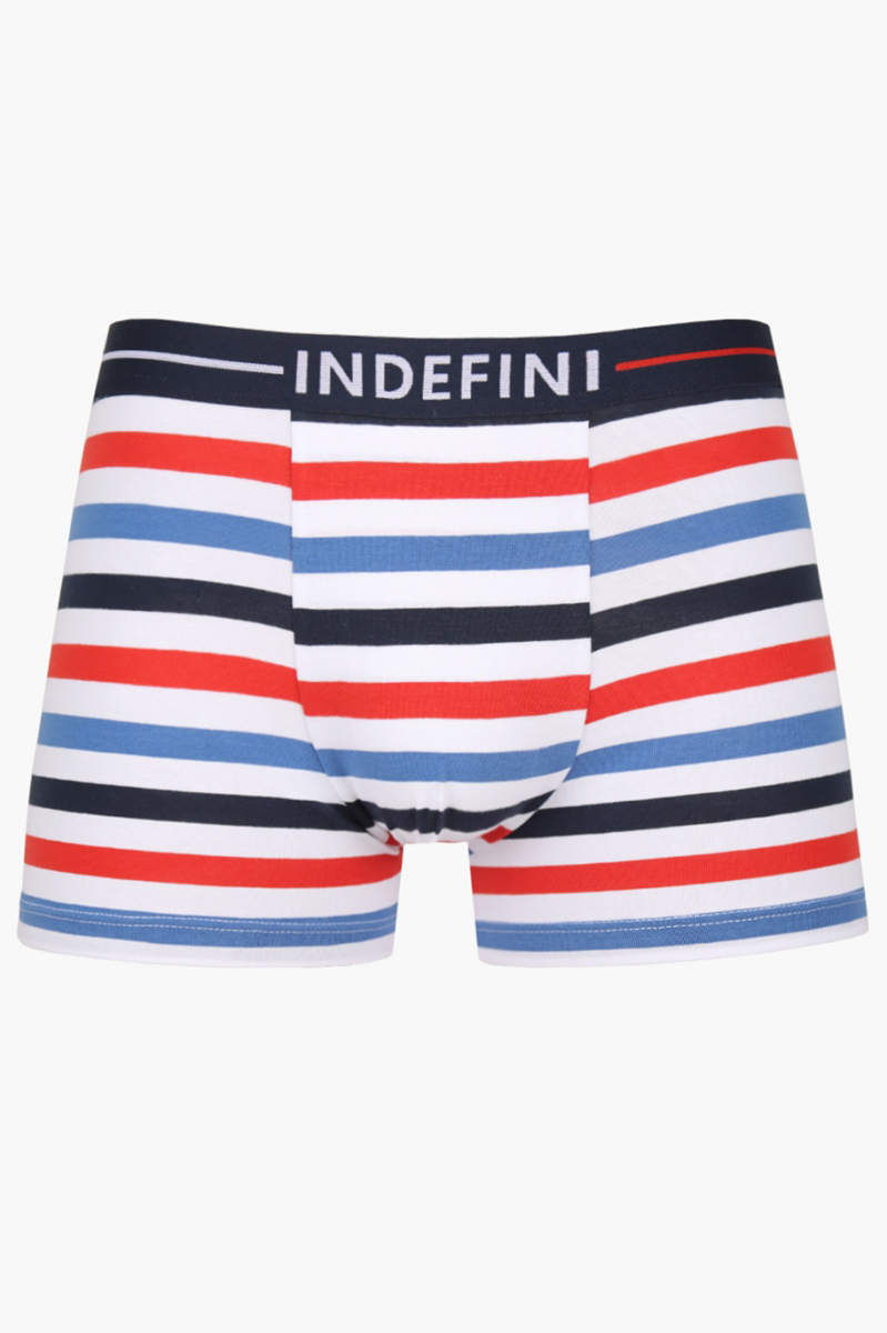 Мужские трусы от торговой марки Индефини. Трусы-боксеры из хлопка, белого цвета, с принтом в яркую полоску, на мягкой резинке.