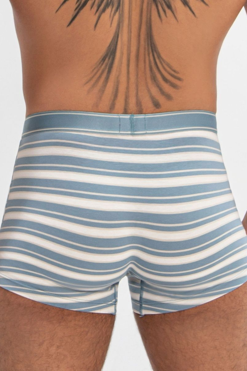Мужские трусы от торговой марки Индефини. Трусы-боксеры из бамбука, песочно-голубого цвета, с принтом в полоску, на мягкой резинке.