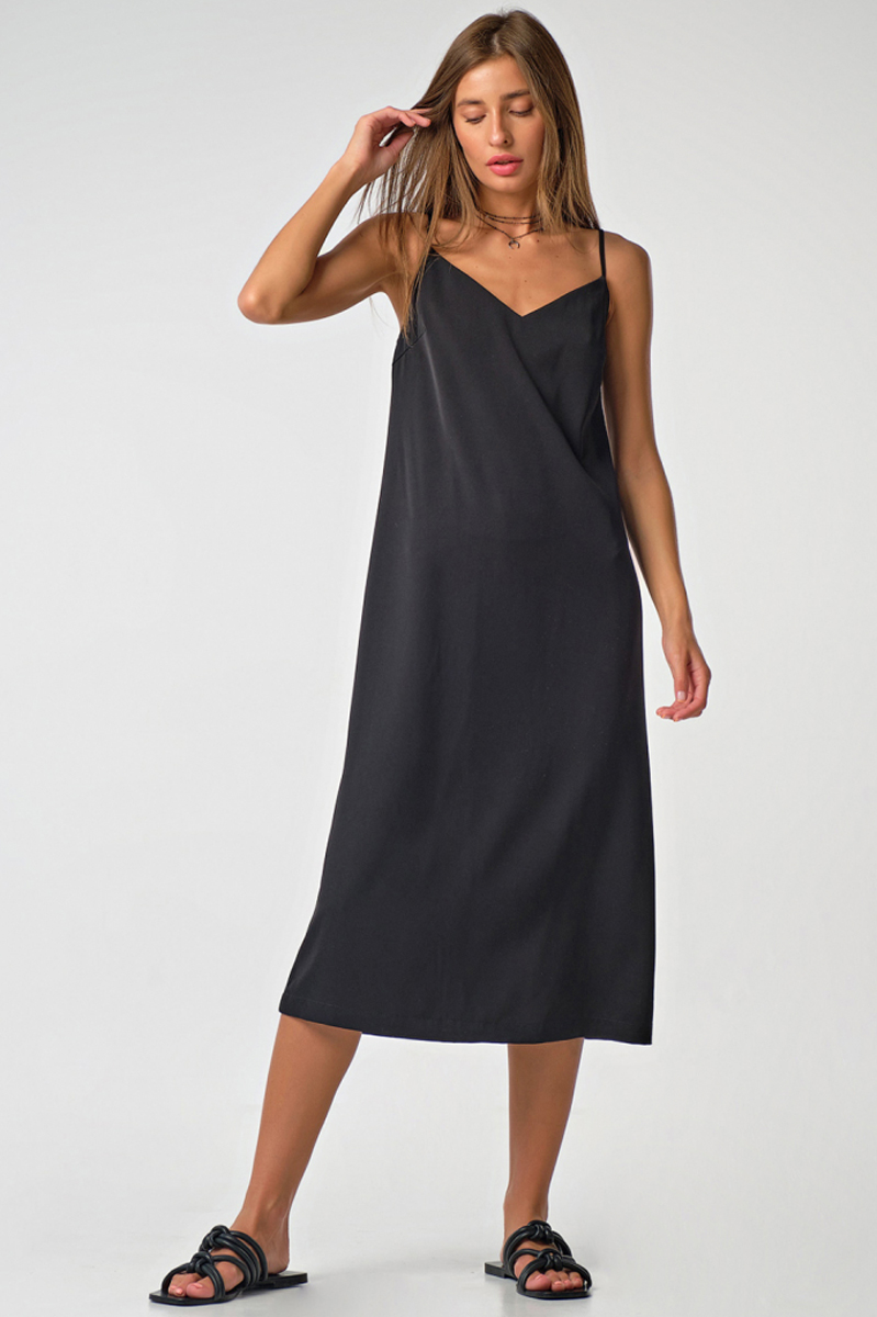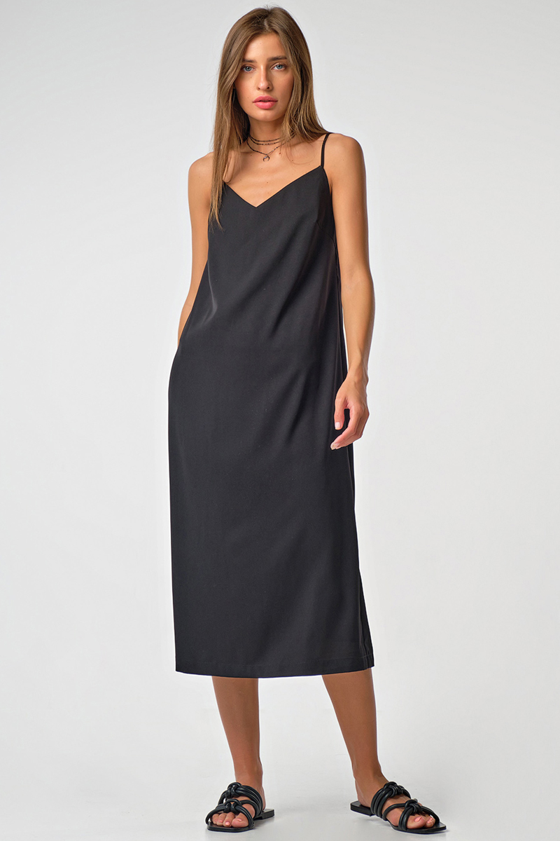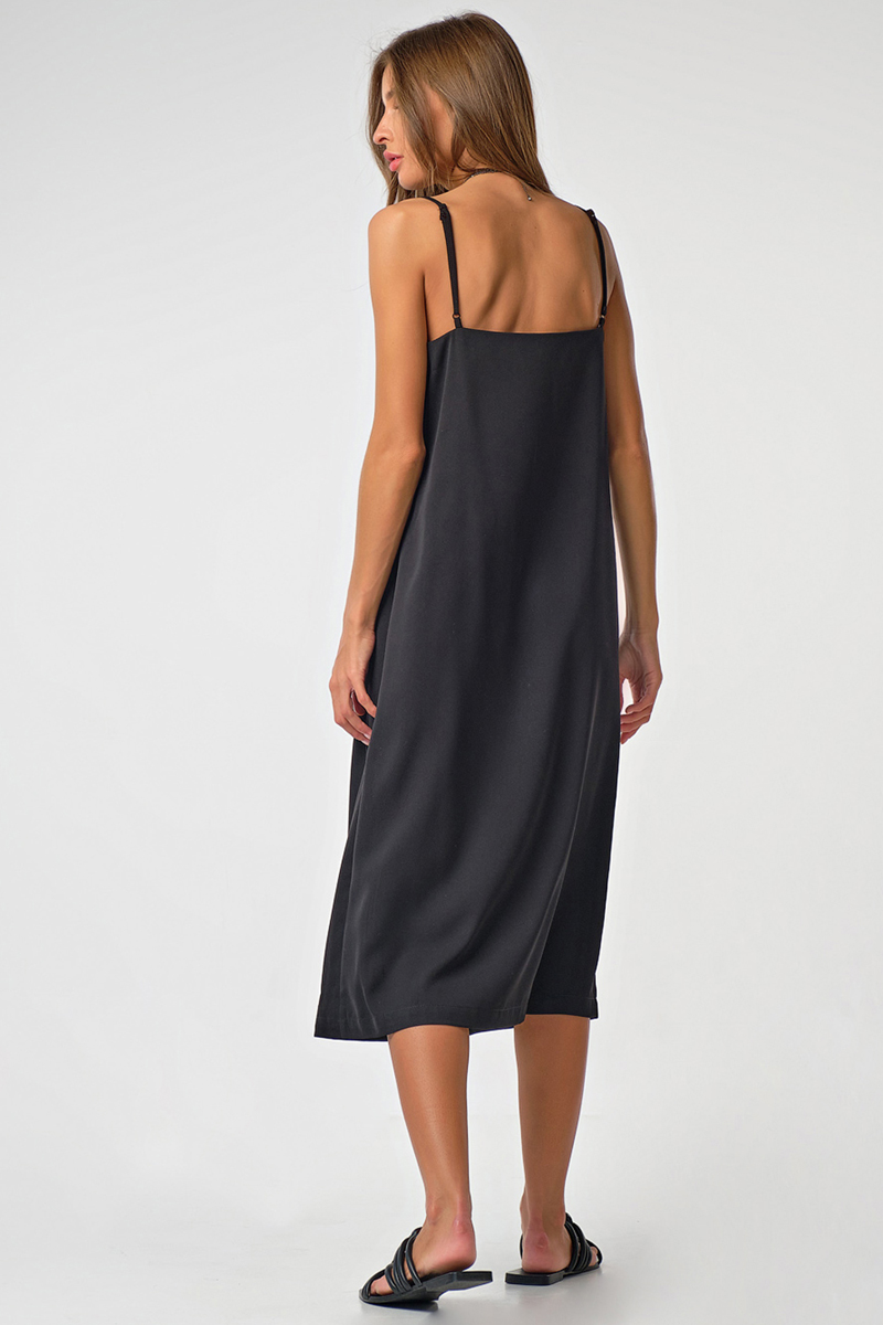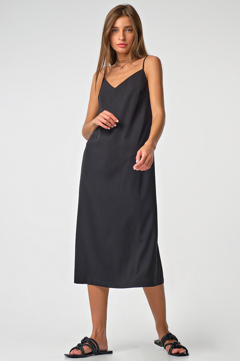 Длина рукава: без рукавов. Тип горловины: V-образный. Линия плеча: на естественном месте. Силуэт: прямой. Длина изделия: 118 см. Особенности: Платье-сорочка из плотного струящегося крепа в бельевом стиле. Детали: V-образная форма горловины, тонкие бретельки с регулировкой.