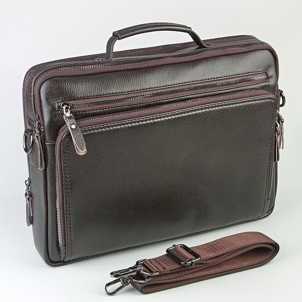 Тип застежки: молния Портфель выполнен из эко-кожи. Имеет большой основной отдел на молнии и отделение для документов. На лицевой стороне два кармана на молнии. Один карман на молнии с тыльной стороны. Плечевой ремень регулируется по длине. Носить портфель можно как в руке, благодаря ручке, расположенной сверху, так и через плечо.