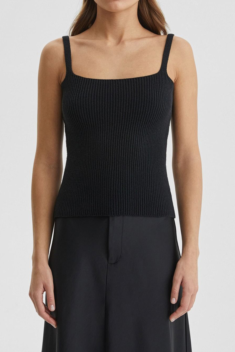 Топ облегающего кроя. Тонкая вязка 7 класса. Стандартная длина. Без рукавов. Приятный к телу.