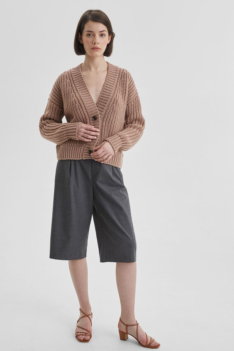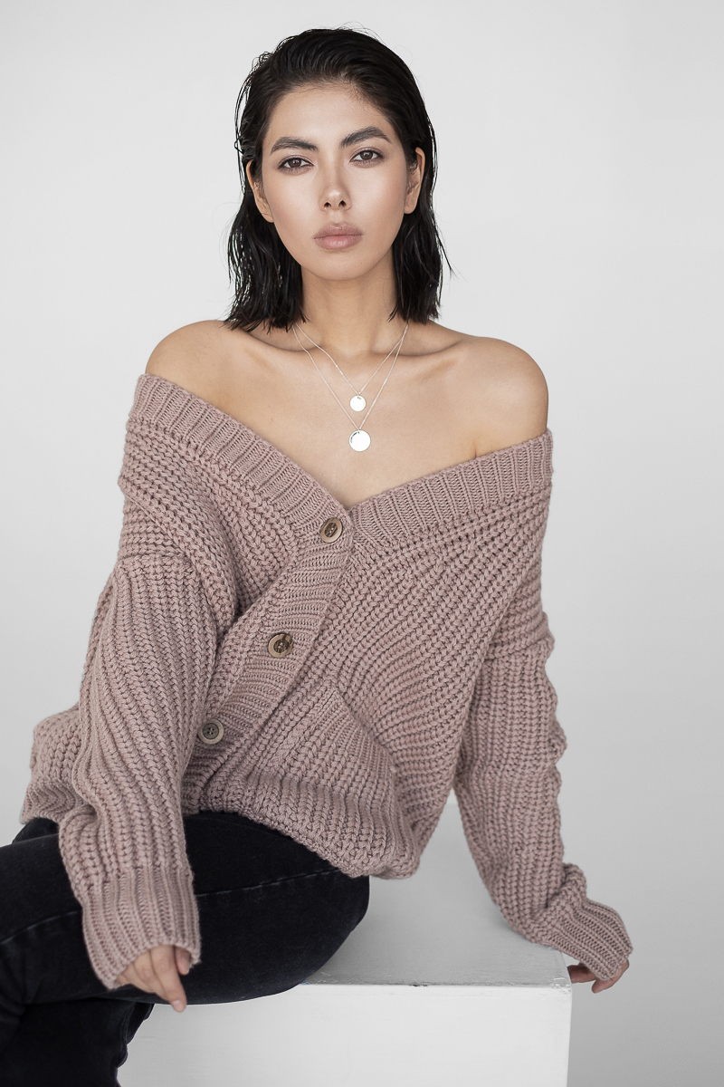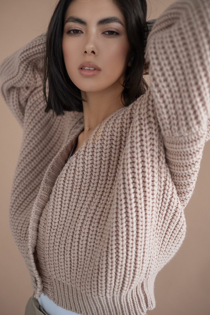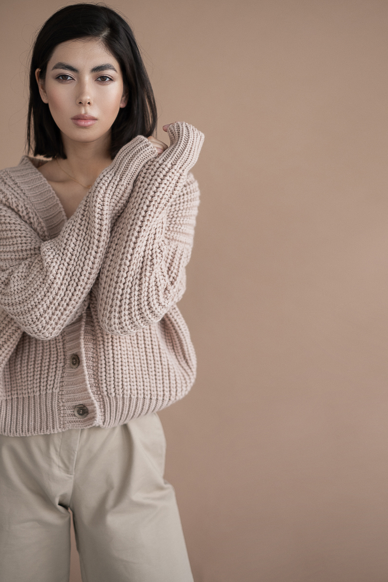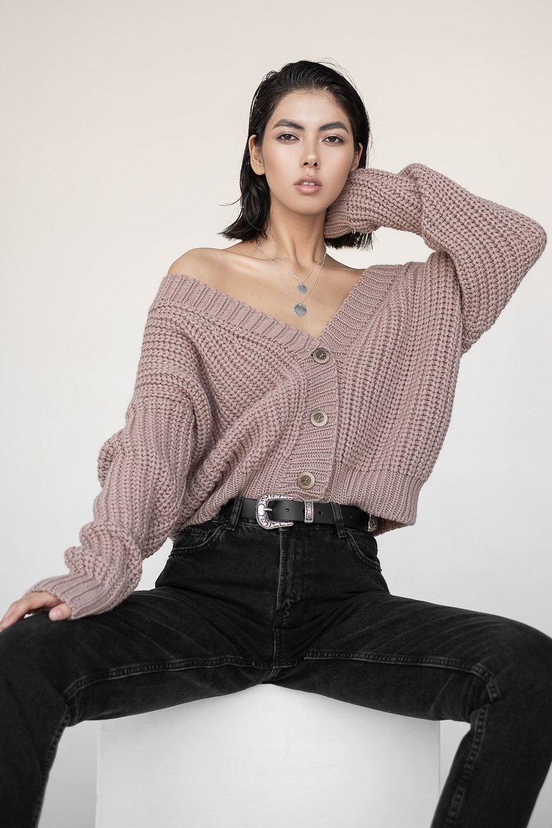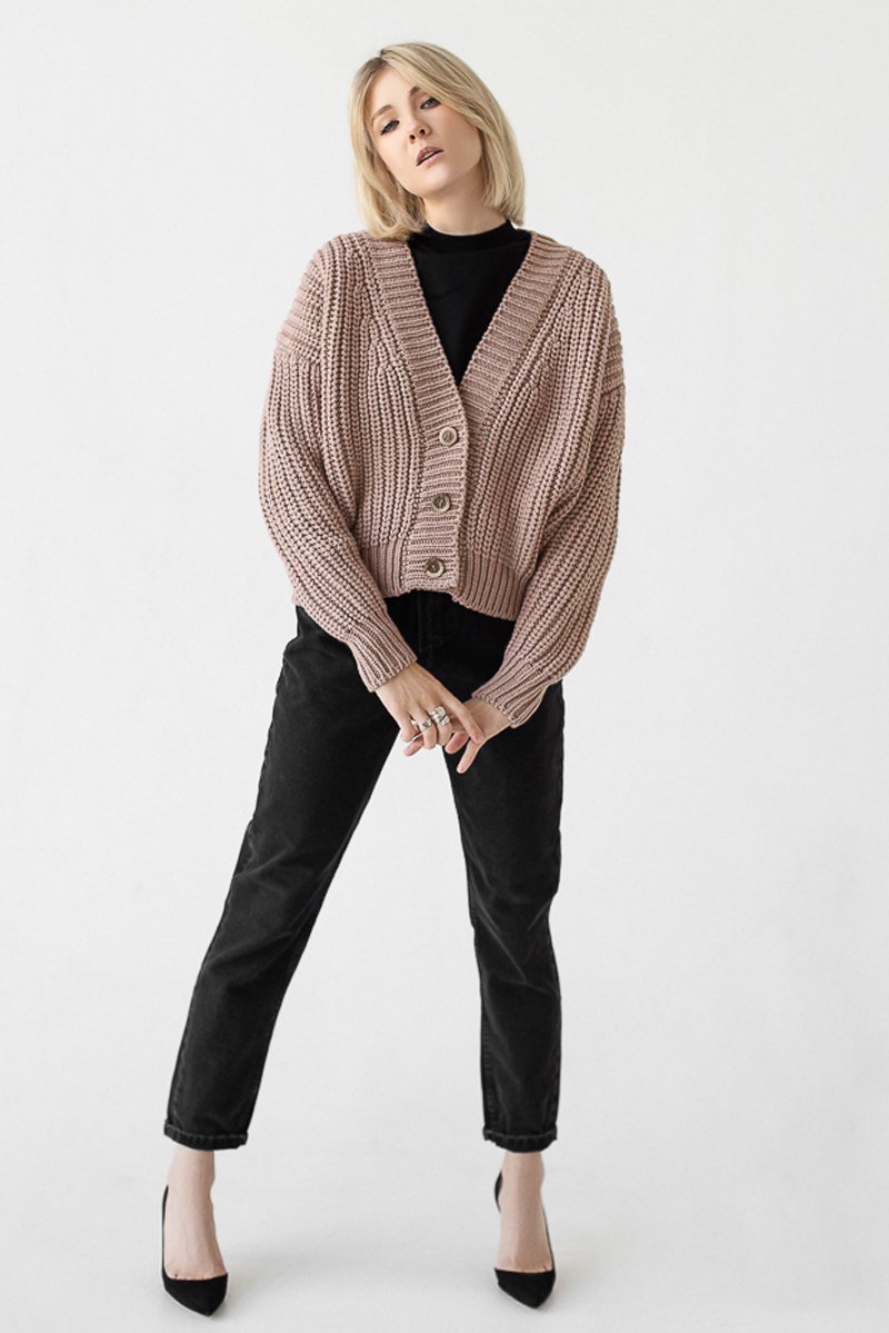Оверсайз крой; Английская резинка; Крупная вязка 3 класса; Укороченная длина; Стандартная длина рукава; Спущенное плечо; Мягкий и теплый. Длина: 56 см. Ширина: 57 см. Рукав: 72 см. Обмеры изделий могут отличаться от заявленных: +/- 3 см.