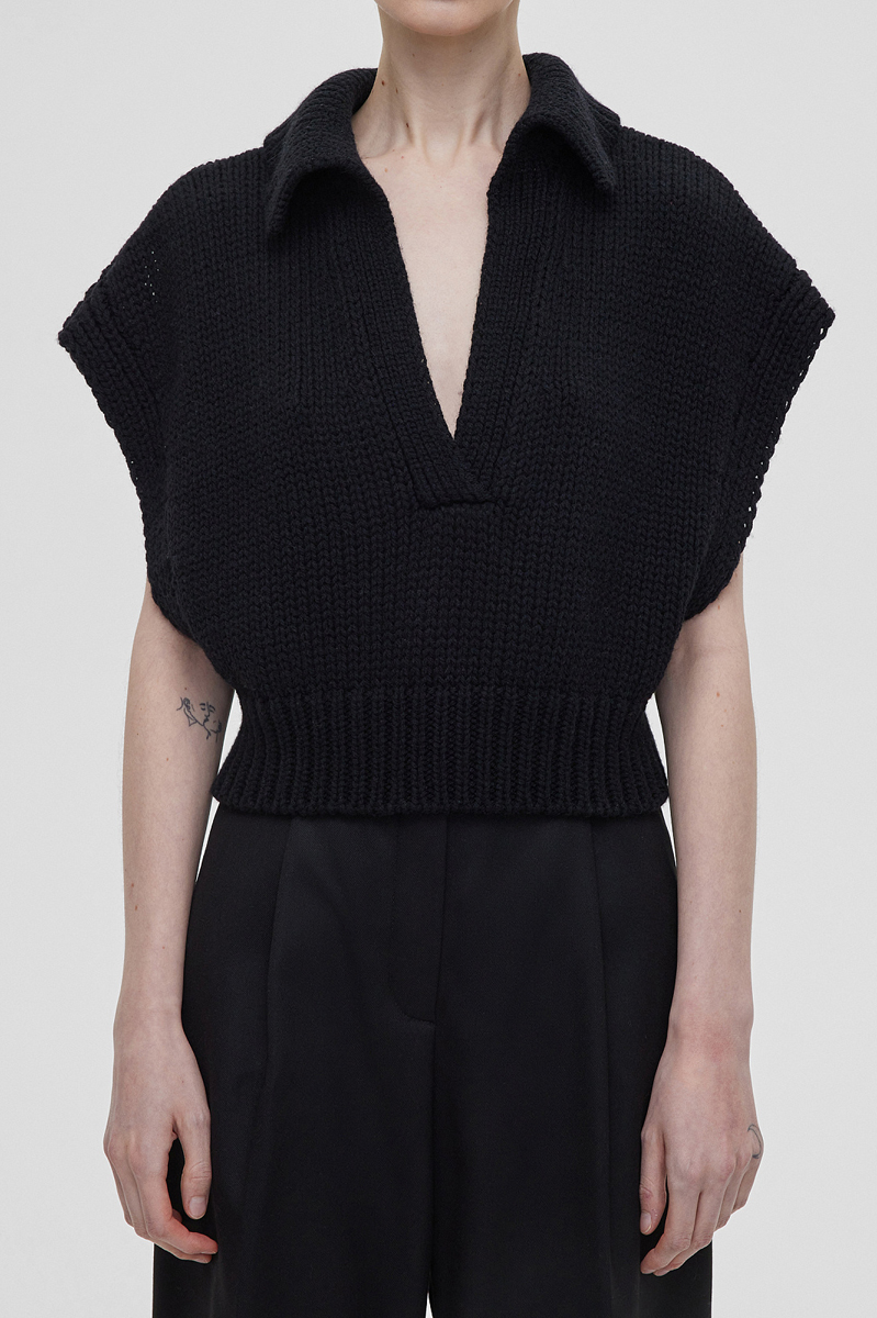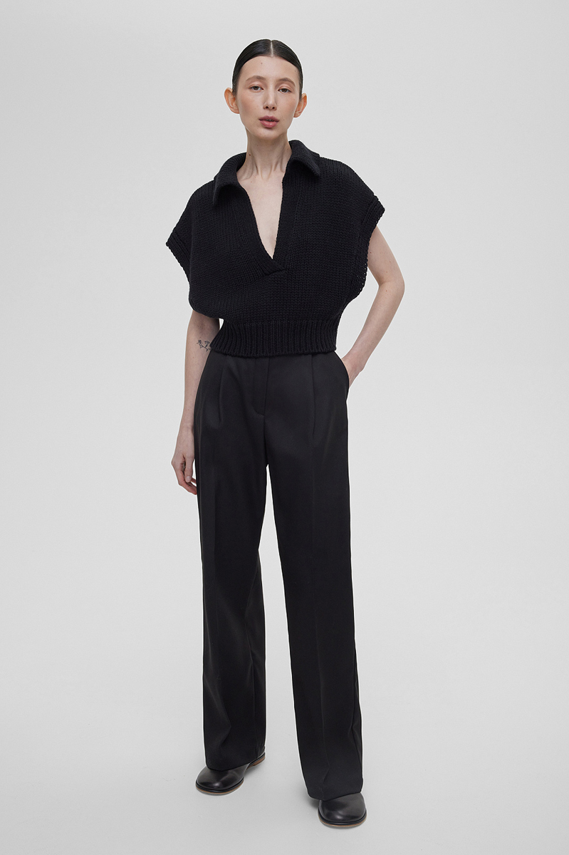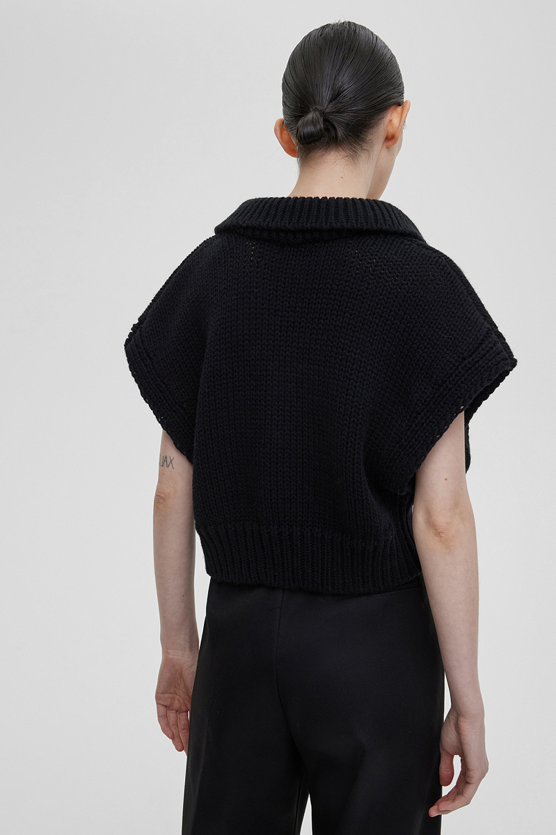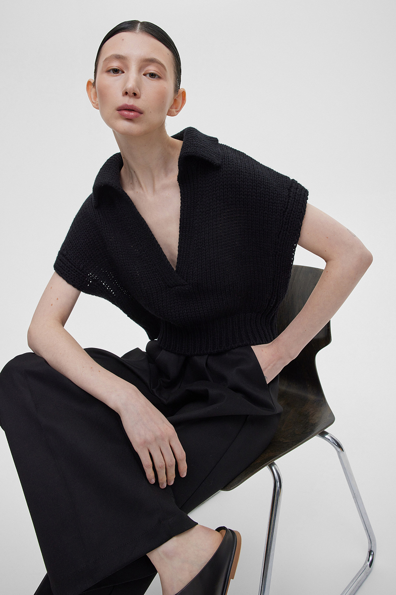 Кроп-жилет свободного кроя; Укороченная длина; Без рукавов; V-образный вырез; Приятный к телу ; Длина изделия: 40 см. Ширина изделия: 40 см.