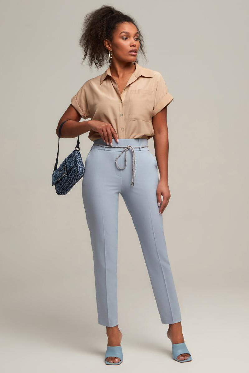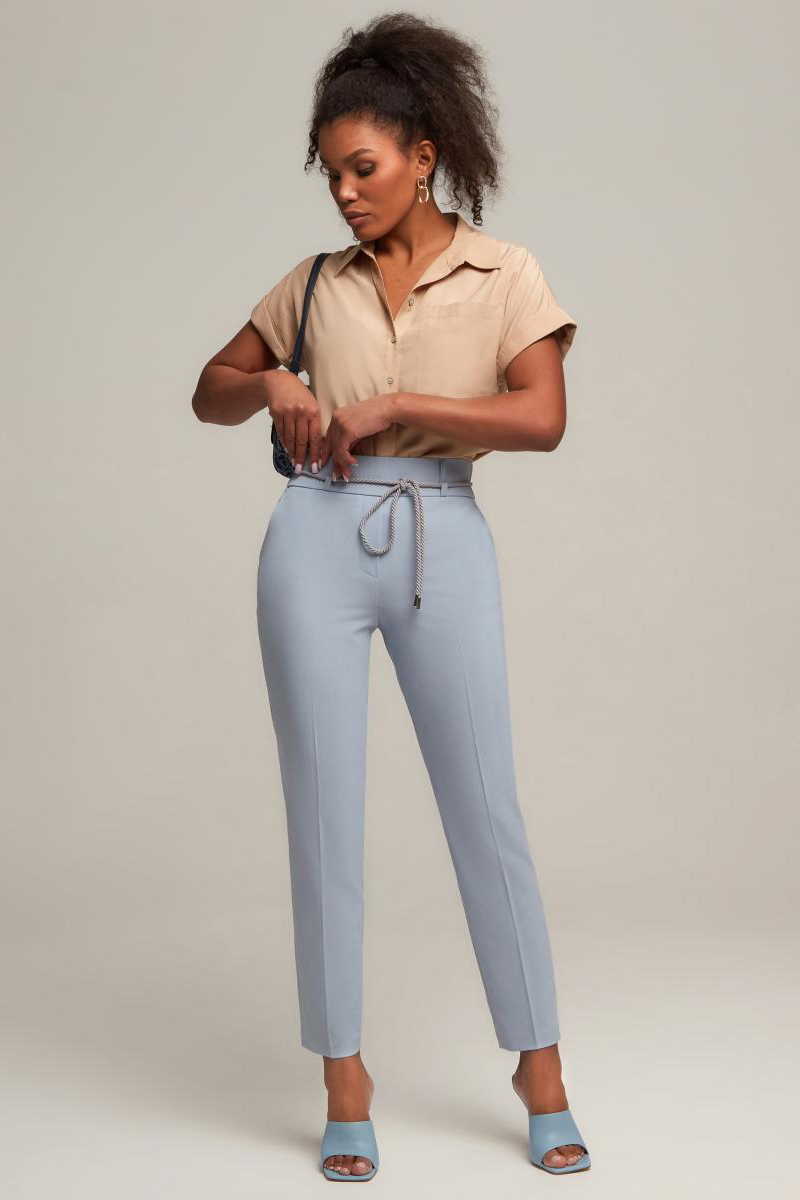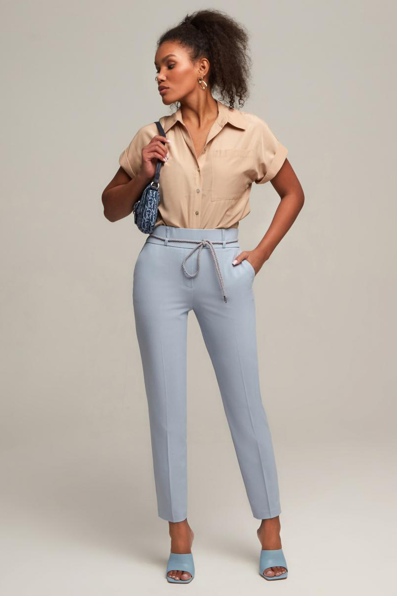 Зауженные брюки со средней посадкой, с боковыми карманами спереди и прорезными с зади.
