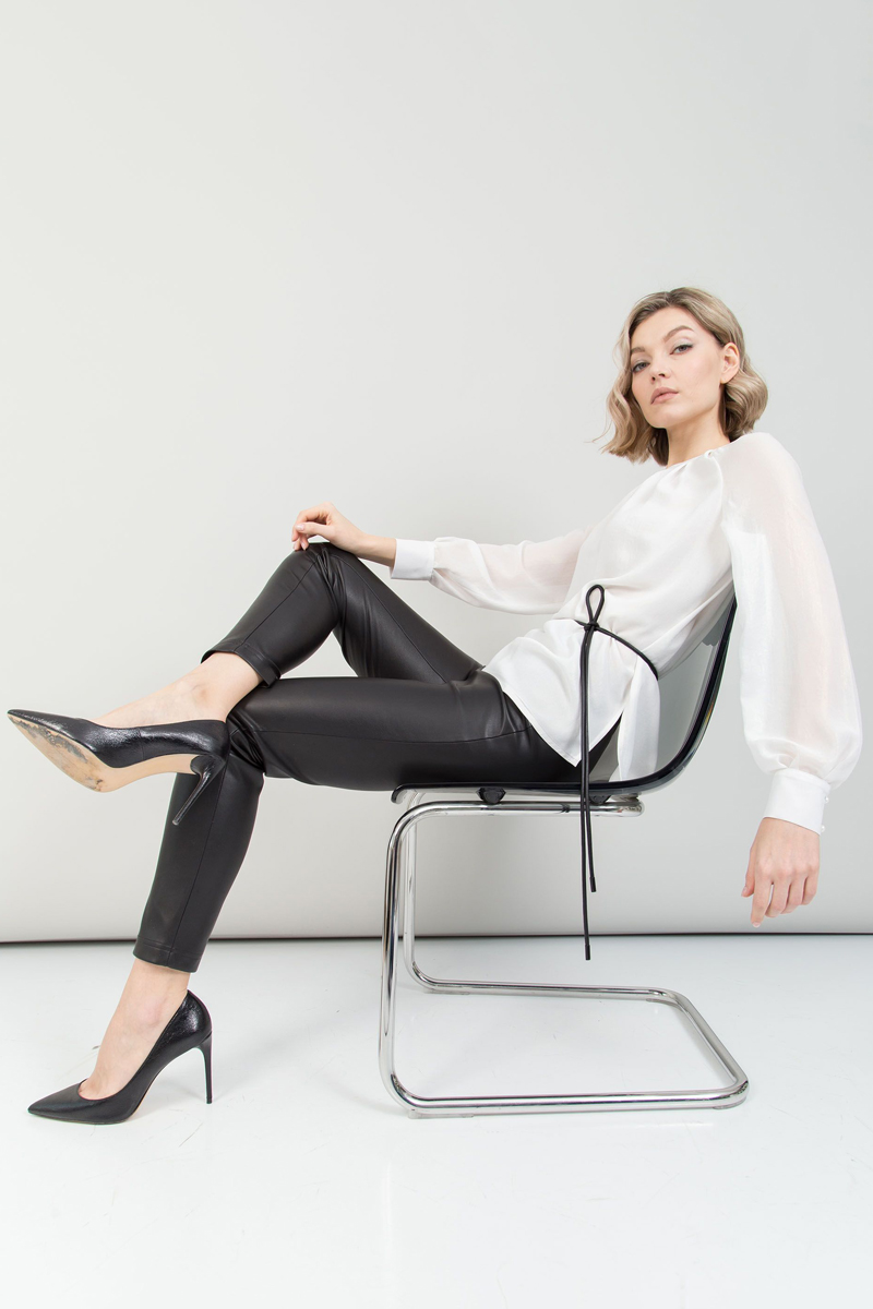 Узкие брюки из экокожи. Длина изделия в росте: 164: 42р -101см, 50р - 103см.