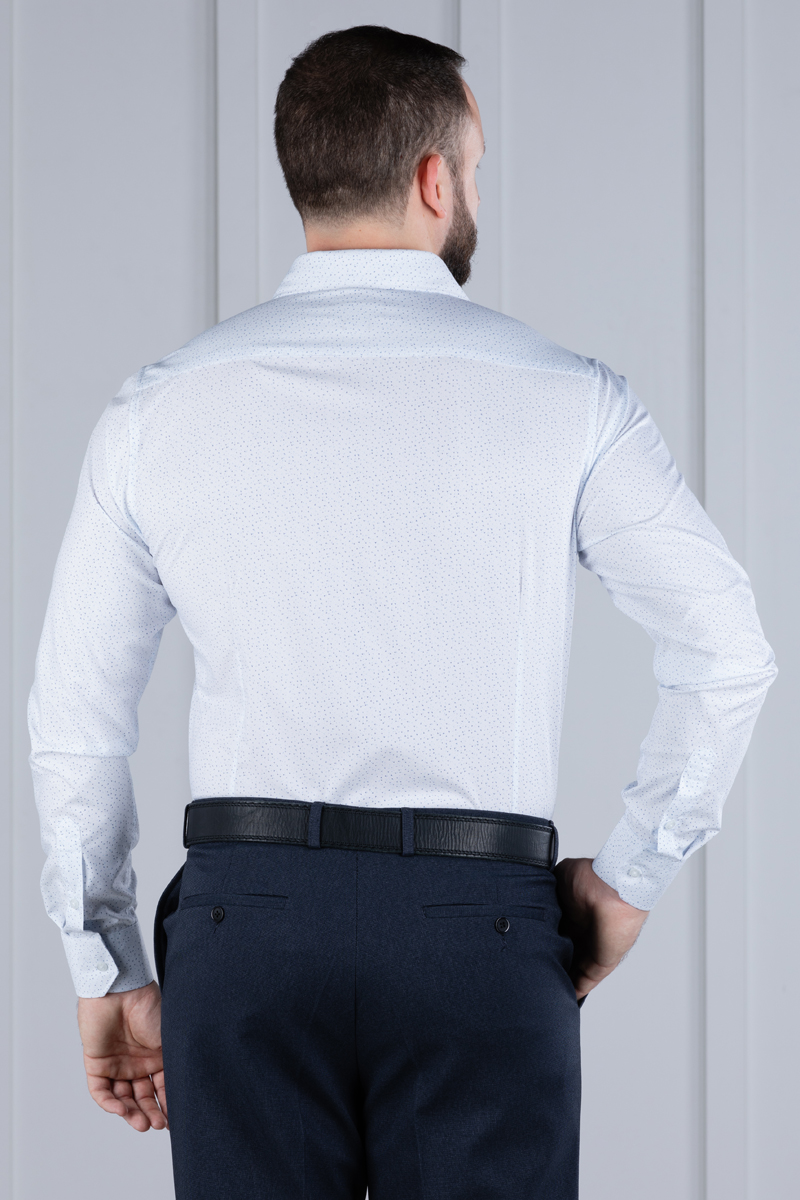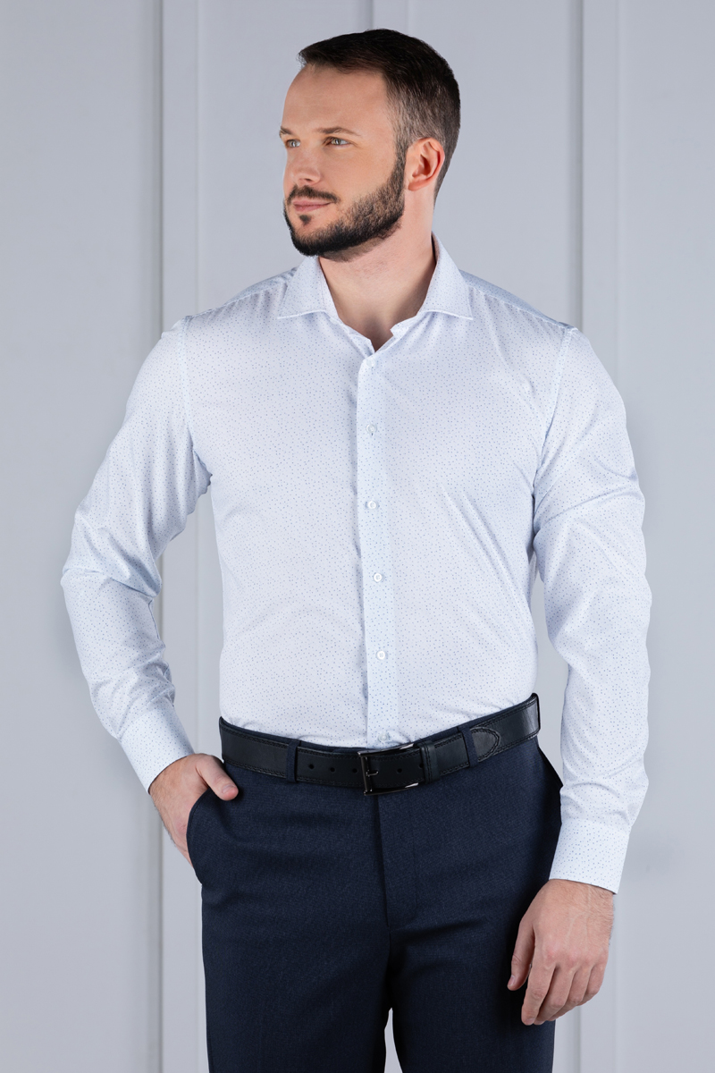 • Цвет: тёмно-синий с узорчатым принтом — классический и выразительный оттенок, придающий образу глубину и стиль.