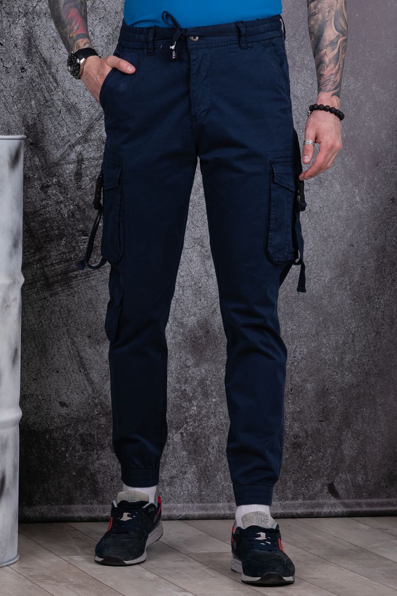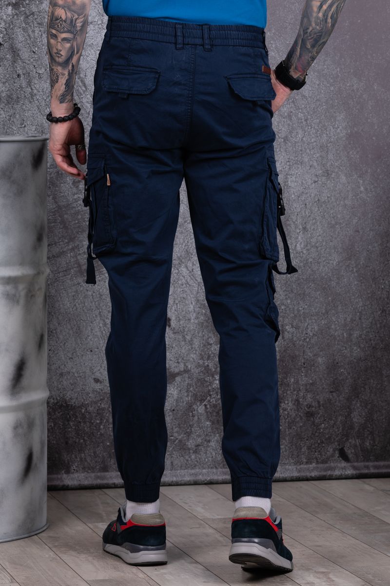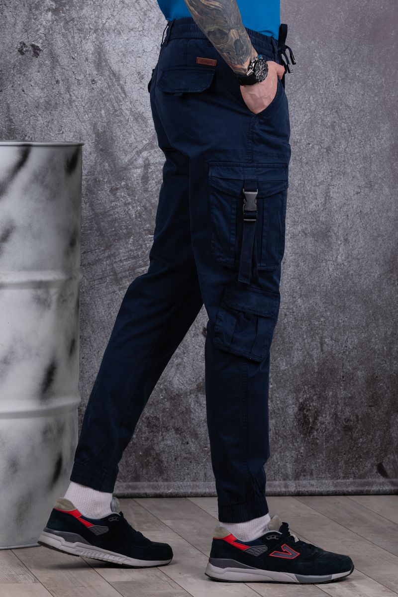 Джоггеры бренда AIGULA с заниженной линией шага из натуральной хлопковой ткани с добавлением небольшого количества эластана. Джоггеры с множеством карманов. Боковые карманы с декоративным замком-пряжкой на ленте. Низ брюк отделан эластичными манжетами.
