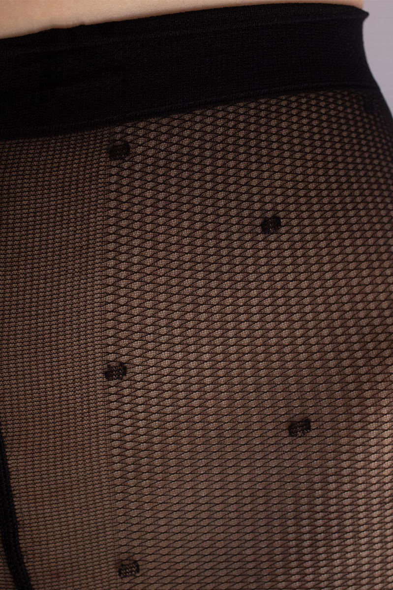 Прозрачные фантазийные колготки с эффектом тюля и оплетенным эластаном, плотностью 40 ден, с широким комфортным поясом, х/б ластовицей и усиленным плоским швом. По всей ноге модели размещен тканый узор "мелкий горошек". Эластан, обкрученный полиамидом, обеспечивает хорошую растяжимость модели и придает ей мягкость, а тюлевое плетение делает изделие более выразительным и запоминающимся. Колготки связаны на новейшем оборудовании, что гарантирует их перманентно высокое качество.