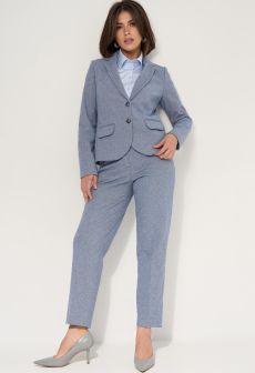 Женские костюмы с брюками шьются из смесовых тканей. Размеры – с 42 по 52.