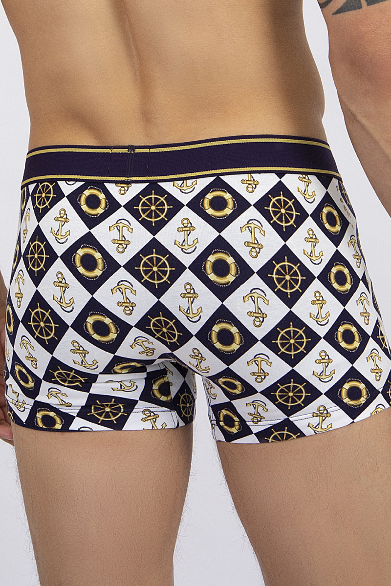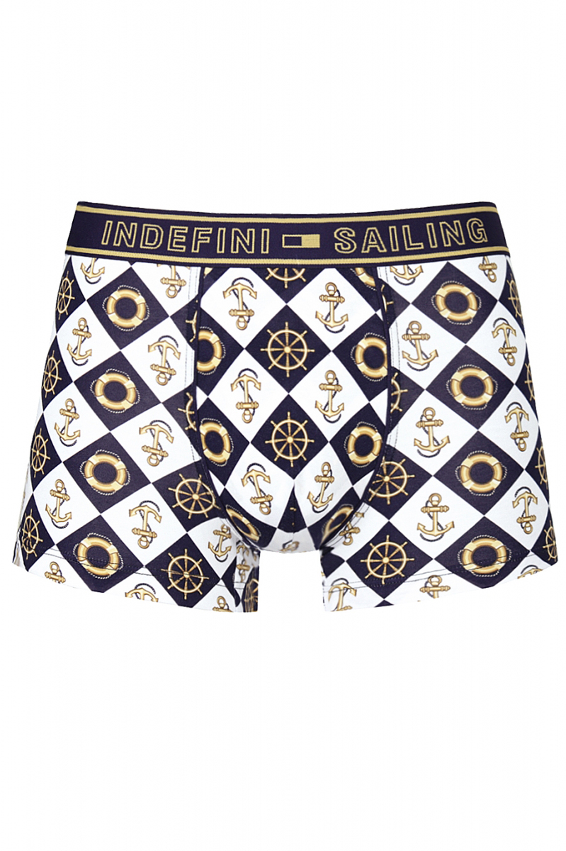 Мужские трусы от торговой марки Индефини. Трусы-боксеры из бамбука и хлопка, бело-синего цвета, с принтом, на мягкой резинке.