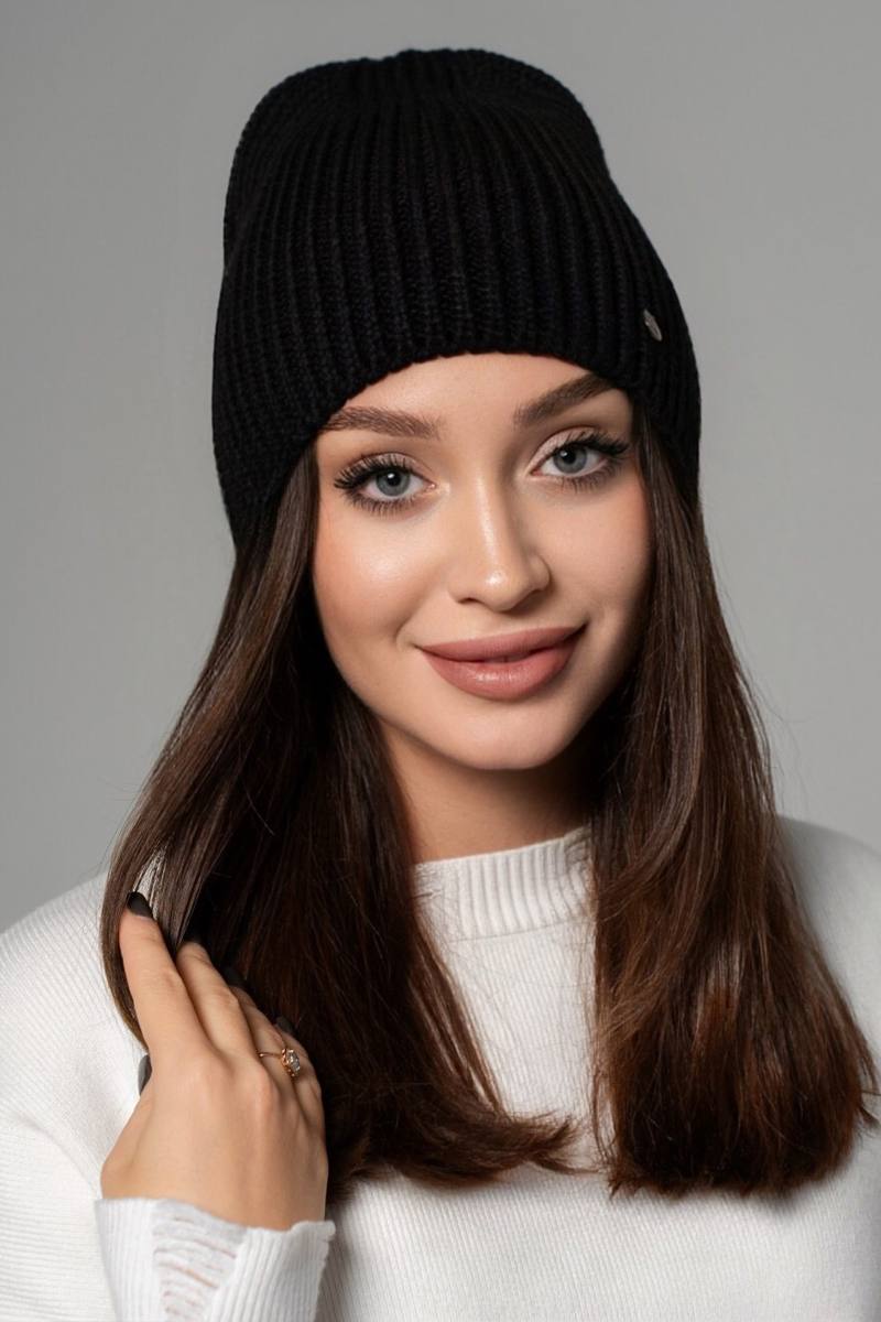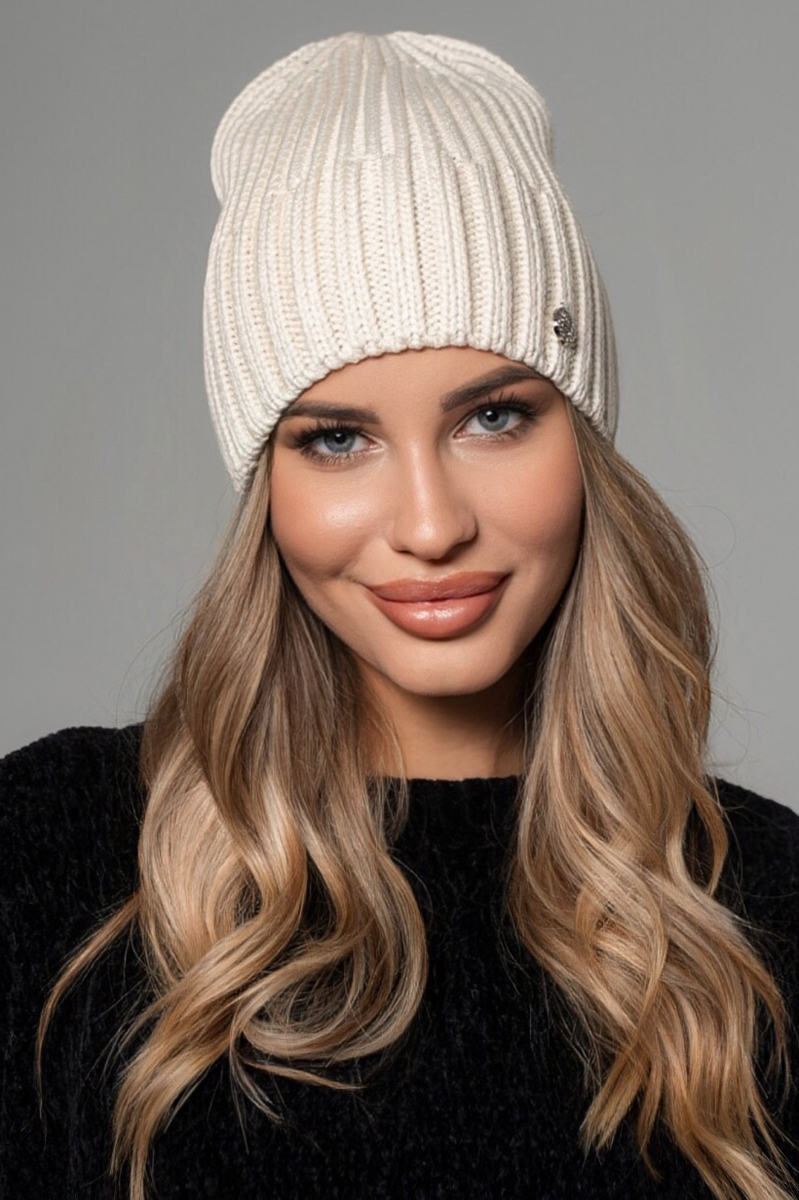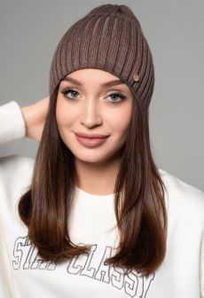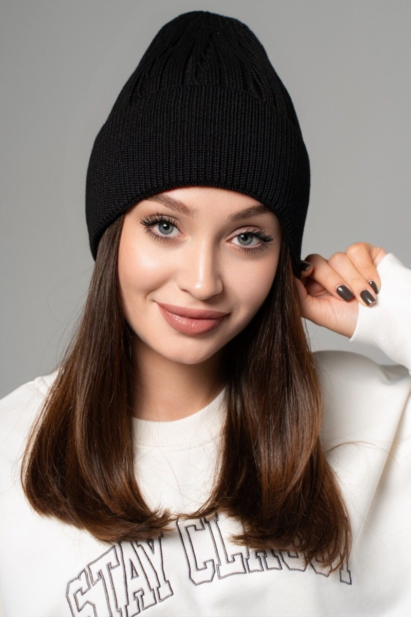Зимние женские шапки, облегающие голову, с отворотом изготавливаются из смесовой пряжи (80% - шерсть, 20% - акрил) и утеплены изнутри флисом.