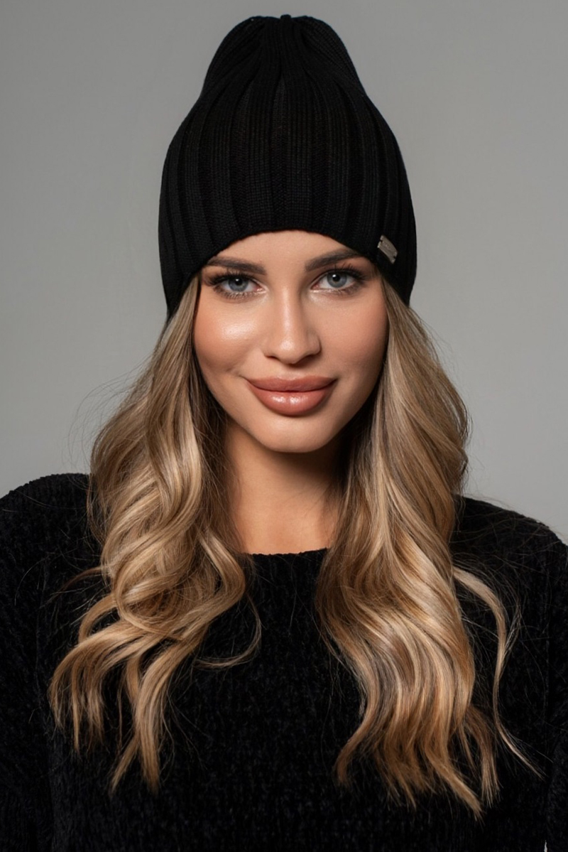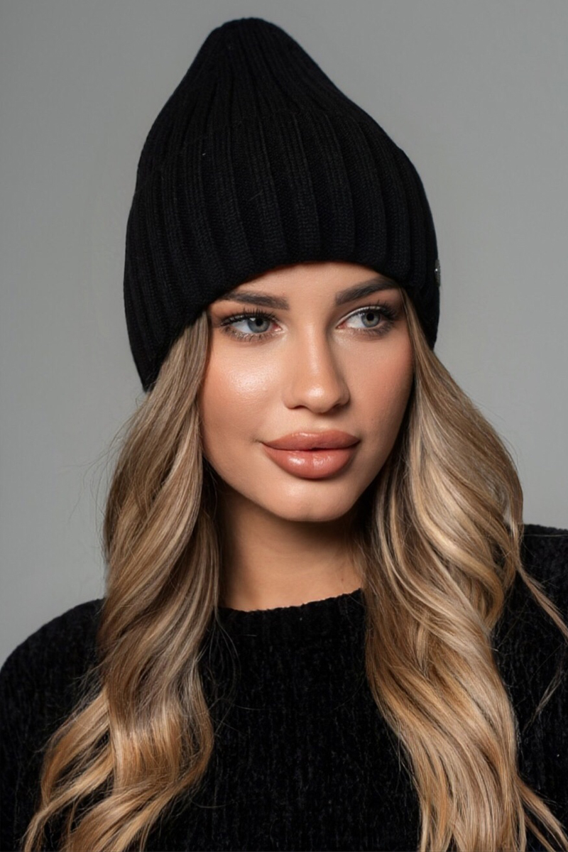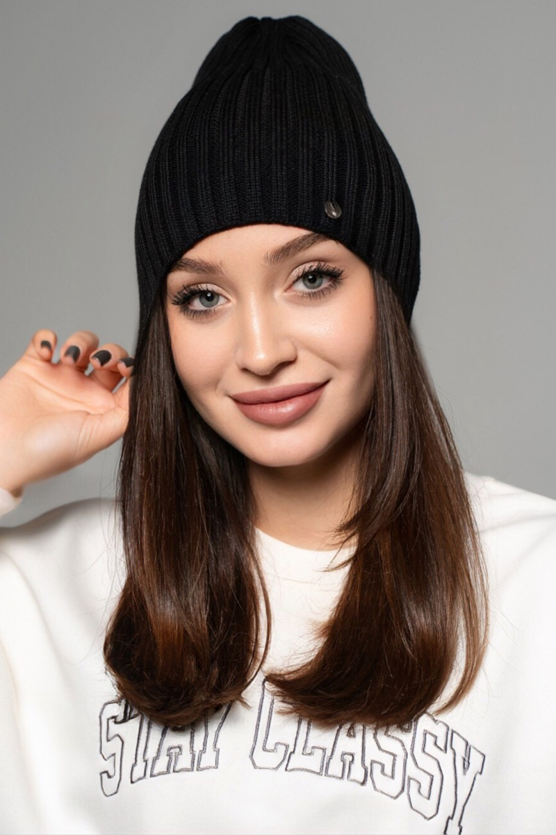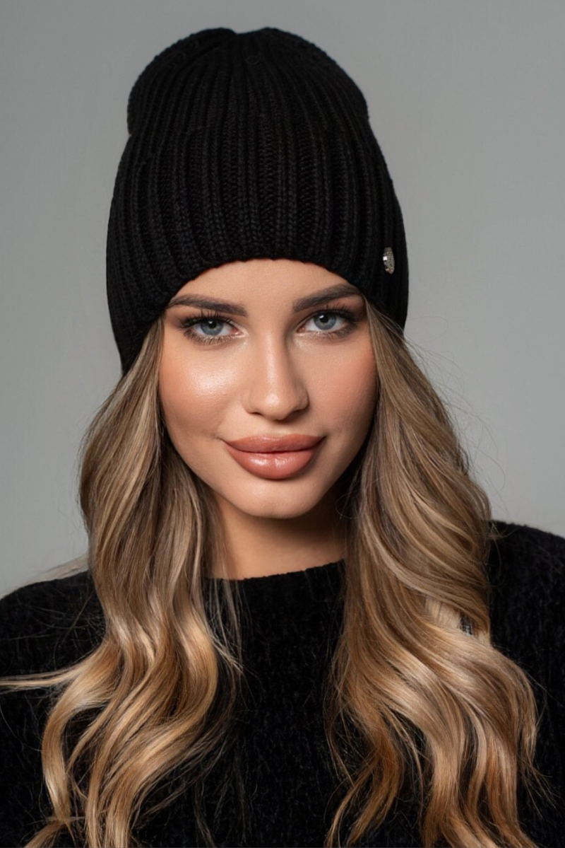 Зимние женские шапки, облегающие голову, с отворотом изготавливаются из смесовой пряжи (80% - шерсть, 20% - акрил) и утеплены изнутри флисом.