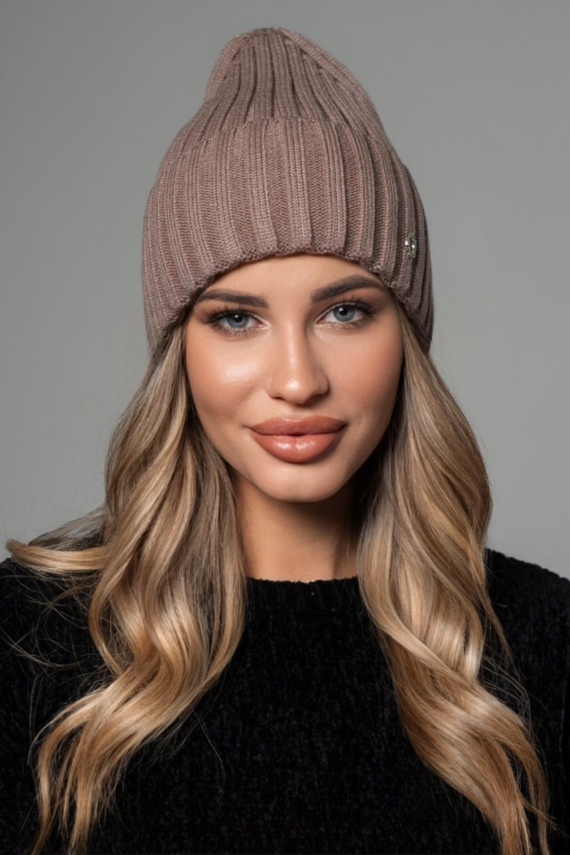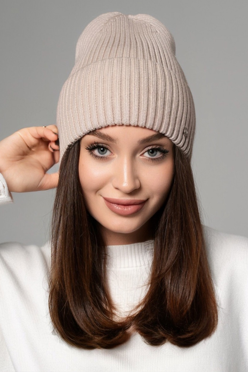 Осенние шапки для женщин облегающего силуэта без флиса. Применяется смесовая пряжа: 50% шерсти, 10% кашемира, 20% нейлона, 20% полиамида.