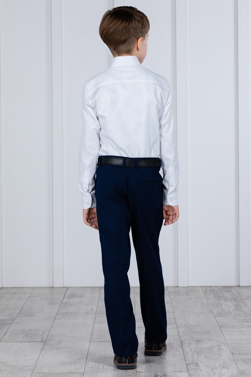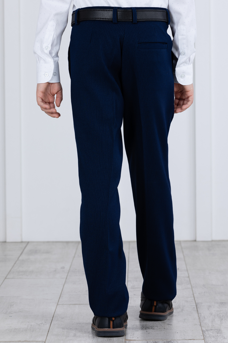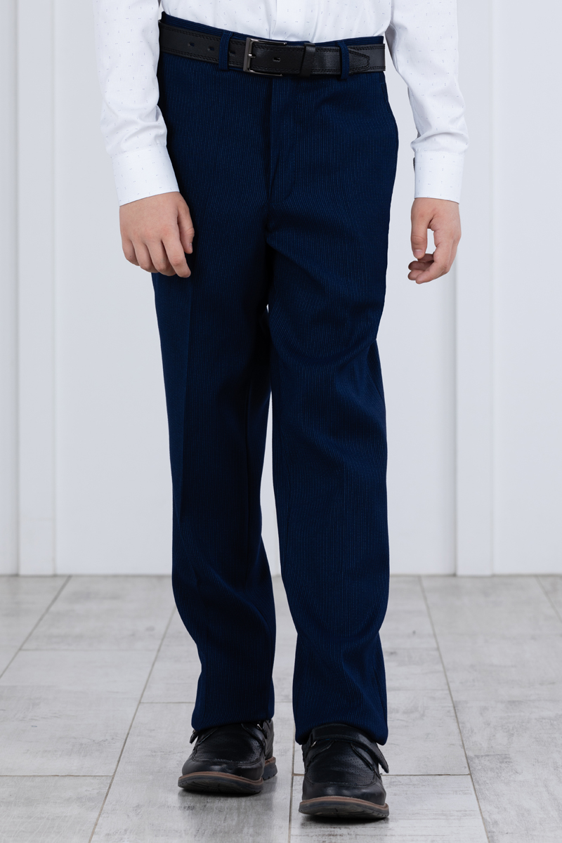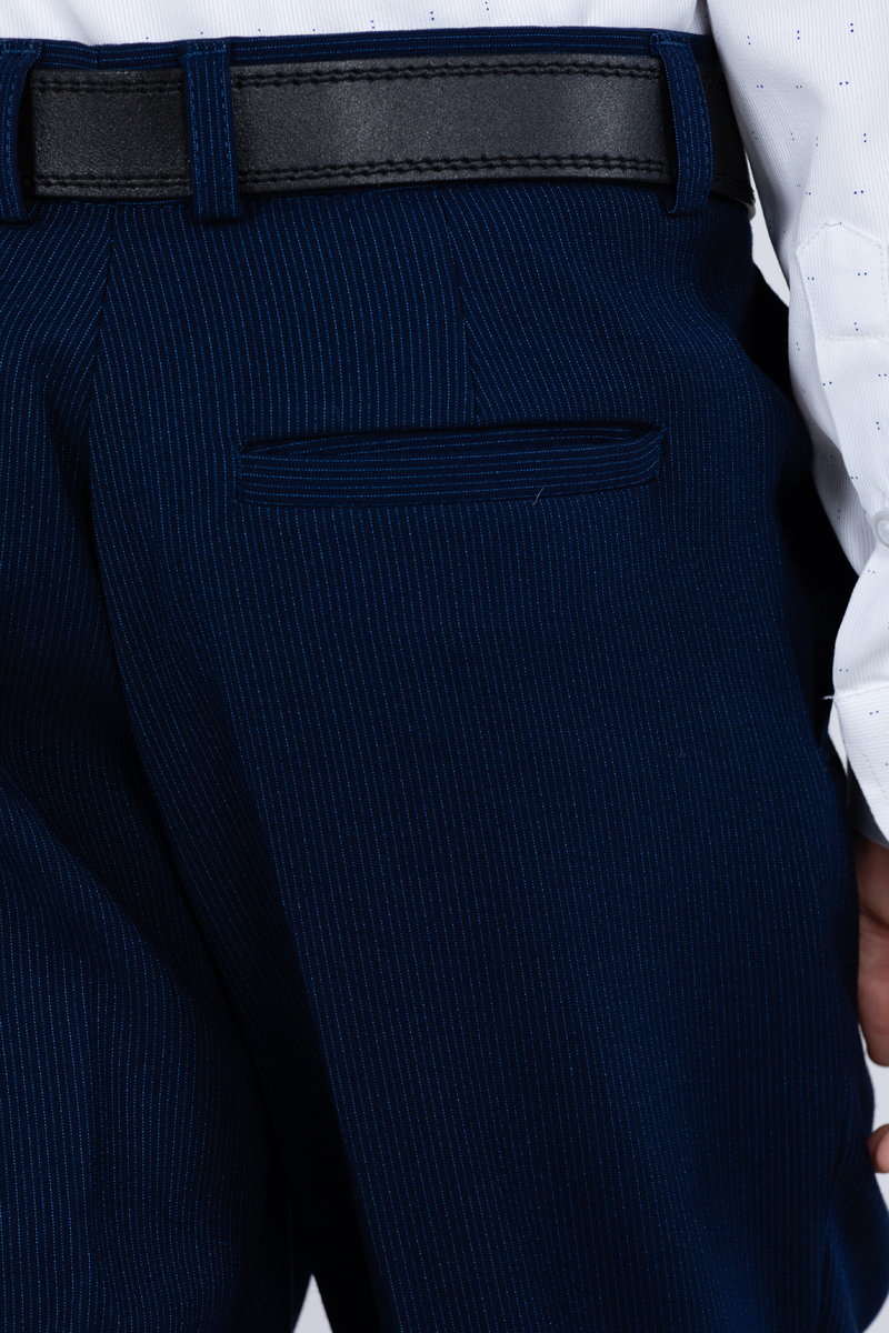 Детские демисезонные классические брюки Svyatnyh синие с полосатым принтом — комфорт и элегантность для межсезоньяБрюки выполнены в зауженном крое без защипов со стрелками, создавая аккуратный и современный образ. Состав ткани из шерсти, вискозы и полиэстера обеспечивает тепло и износостойкость, а наличие различного количества регулирующих элементов на поясе позволяет добиться идеальной посадки для разных размеров. В размерах 30 и 32 отсутствуют задние карманы и резинка не регулируется по длине, а в размерах 34-38 один задний карман без пуговицы и есть регулирующая резинка в поясе. В больших размерах 40-42 задний карман с пуговицей, резинки в поясе нет.