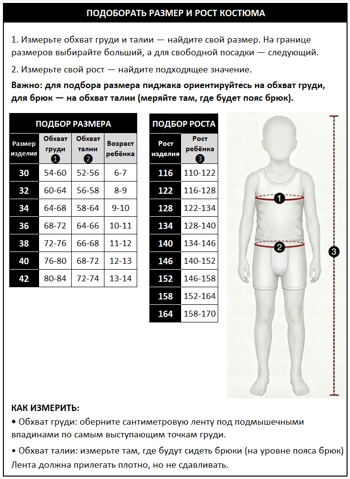 | Размер, соответствующий костюму | 30 | 32 | 34 | 36 | 38 | 40 | 42 |